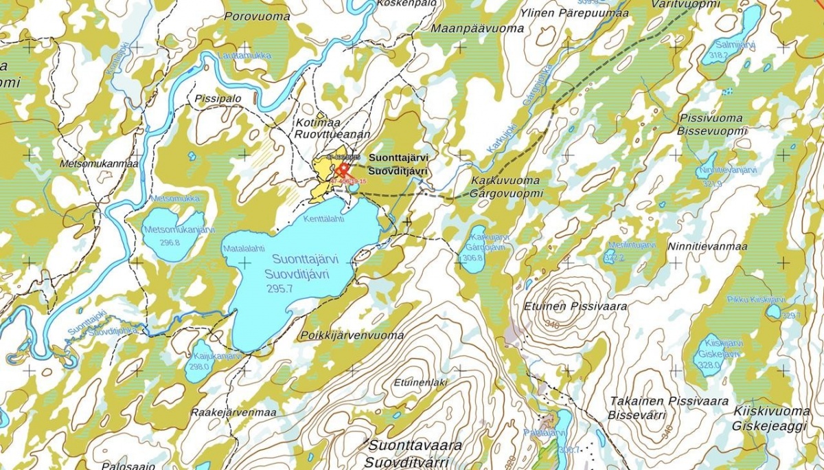 Osoite: ei tarkkoja osoitteita (Maanmittauslaitoksen Karttapaikka antaa pienemmän palstan lähimmän osoitteen Suontajärvi 522, Enontekiö kohdalle ja isomman palstan lähimmän osoitteen Kelloselänpolku 146, Enontekiö kohdalle)