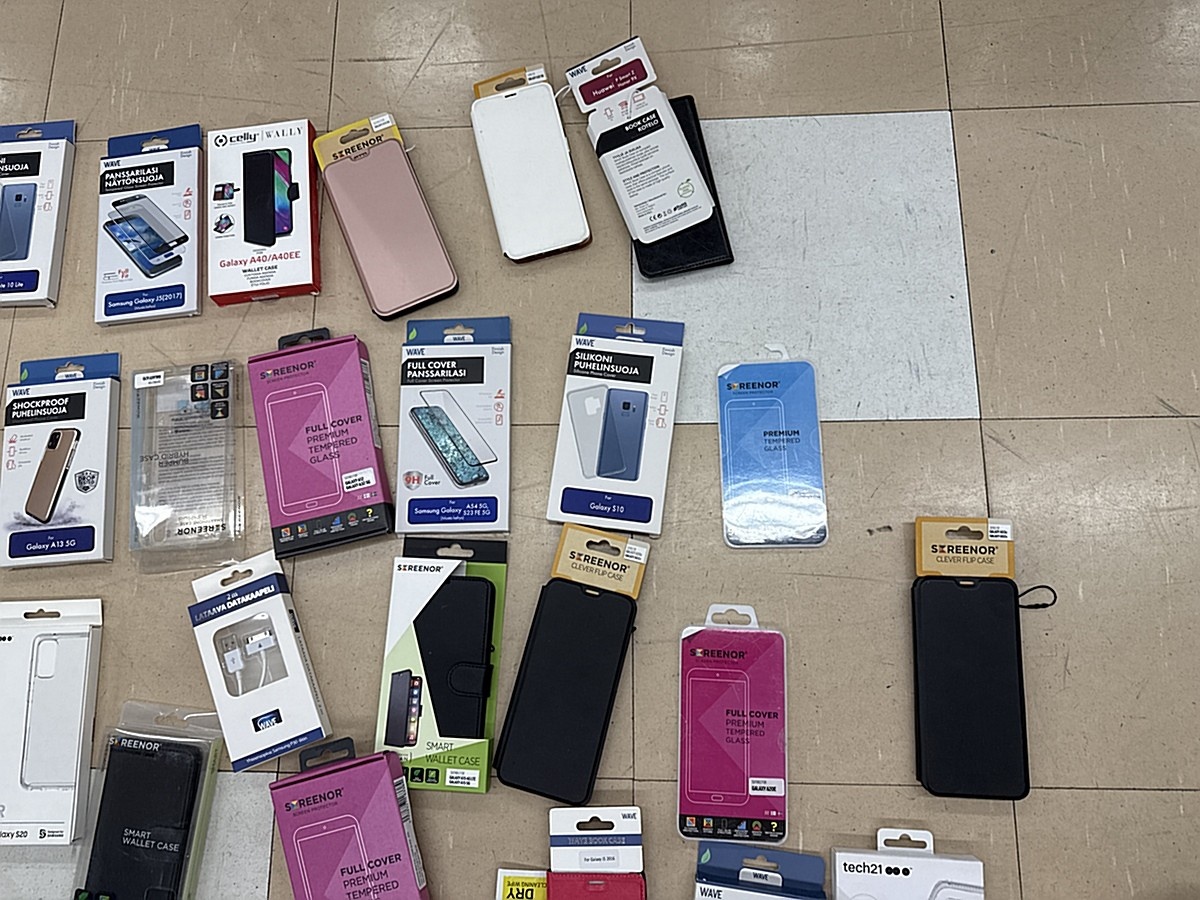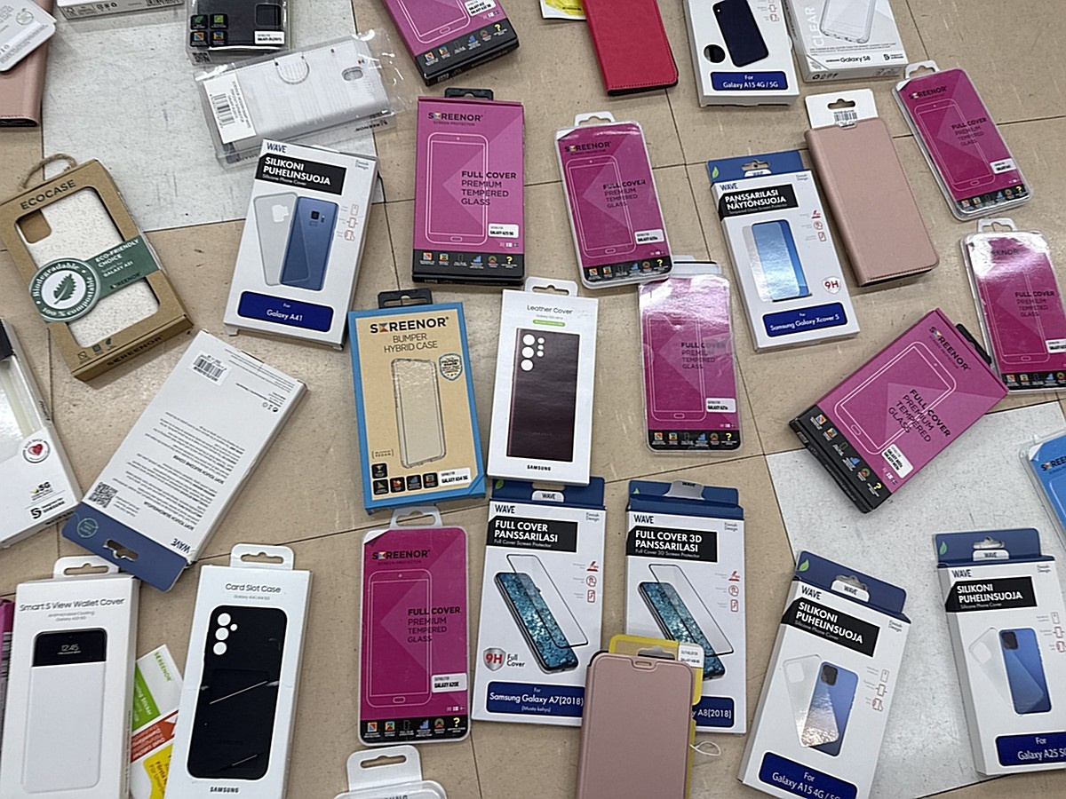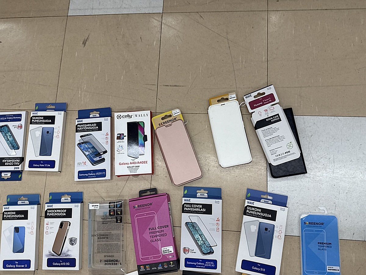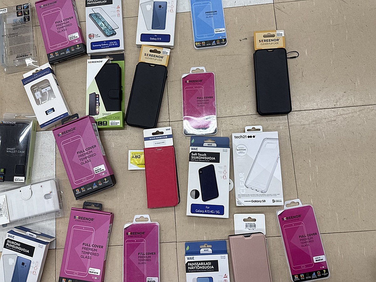 Myyntikohteet » 3. Apiankadun Konepistepojat Oy:n konkurssipesä (0967414-0), VALKEAKOSKI, 16.01.2026 » 59. Puhelimenkuoret ja näytönsuojat sekalaiset noin (140 kappaletta)
