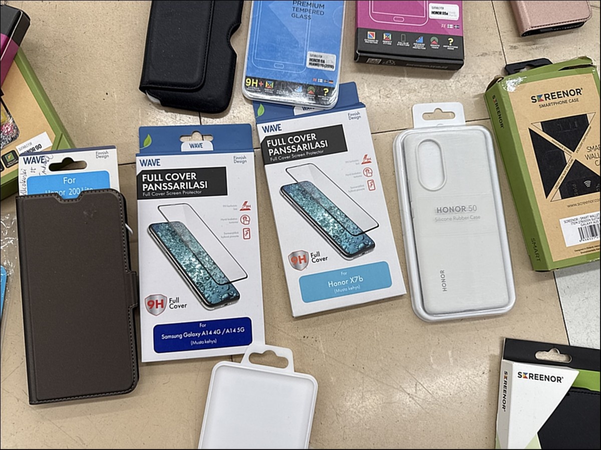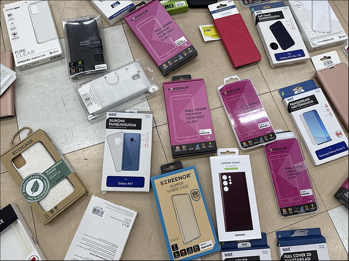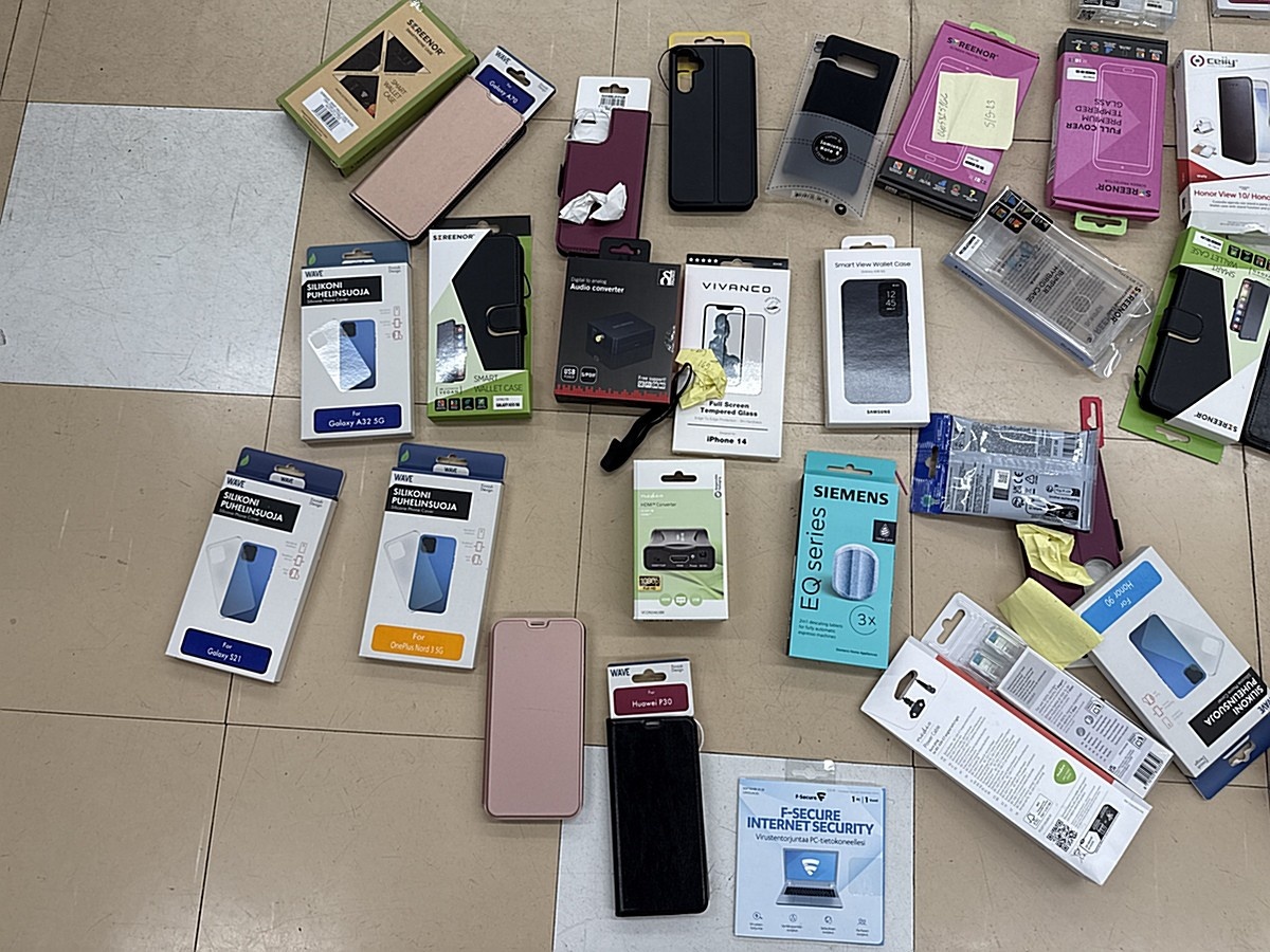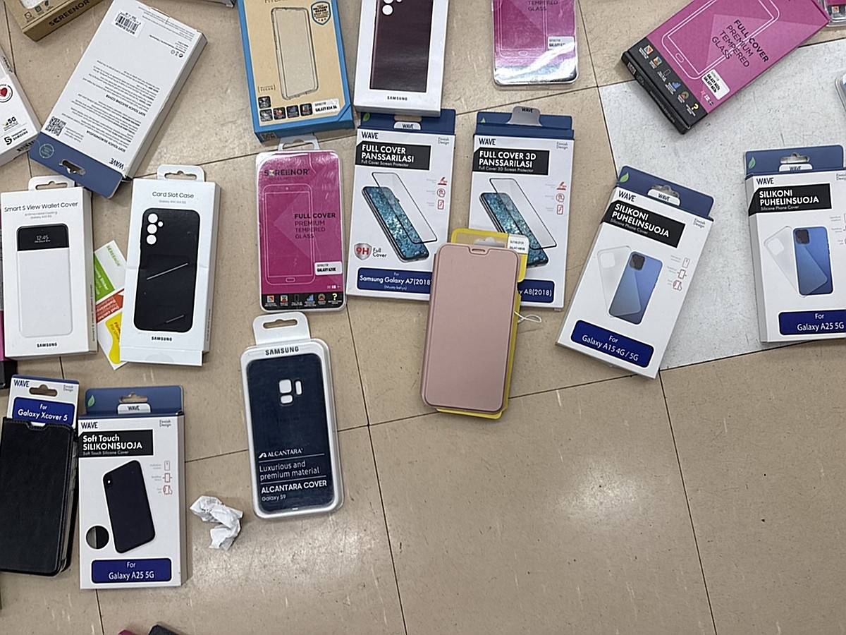 Myyntikohteet » 3. Apiankadun Konepistepojat Oy:n konkurssipesä (0967414-0), VALKEAKOSKI, 16.01.2026 » 59. Puhelimenkuoret ja näytönsuojat sekalaiset noin (140 kappaletta)