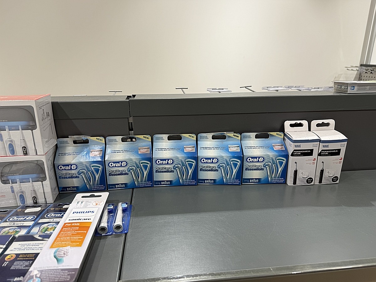 Myyntikohteet » 4. Apiankadun Konepistepojat Oy:n konkurssipesä (0967414-0), VALKEAKOSKI, 20.01.2026 » 75. Suuhygieniatuotteet mm. Hammasvälipesuri, hammasharja vaihtopäät ja desinfioivat hammasharjapidikkeet