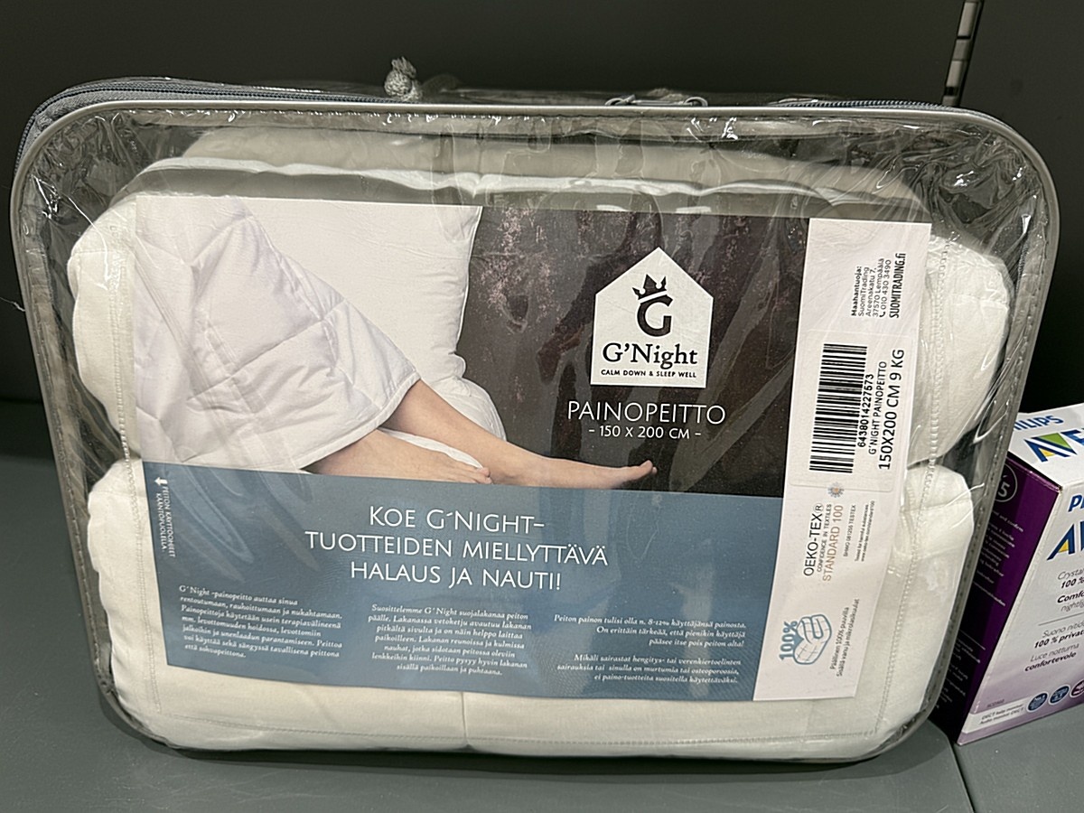 Painopeitto, hiustenkuivaimet, itkuhälytin, kivunlievittäjä, lämpöpeitto ja kuorsausnaamio