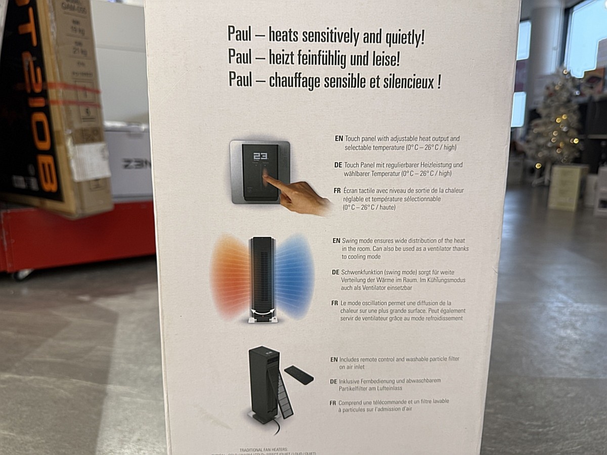 Lämmittimellä varmistat kodin sopivan lämpötilan. Tyylikkään musta Stadler Formin Paul -lämmitin on tarkoitettu pinta-alaltaan 30 m² tai tilavuudeltaan 75 m³ tilaan. Monikäyttöisellä lämmittimellä varmistat kodin sopivan lämpötilan, se tuo lämpöä kotiisi talven pakkasilla ja kesällä toimii viilentävänä tuulettimena.
