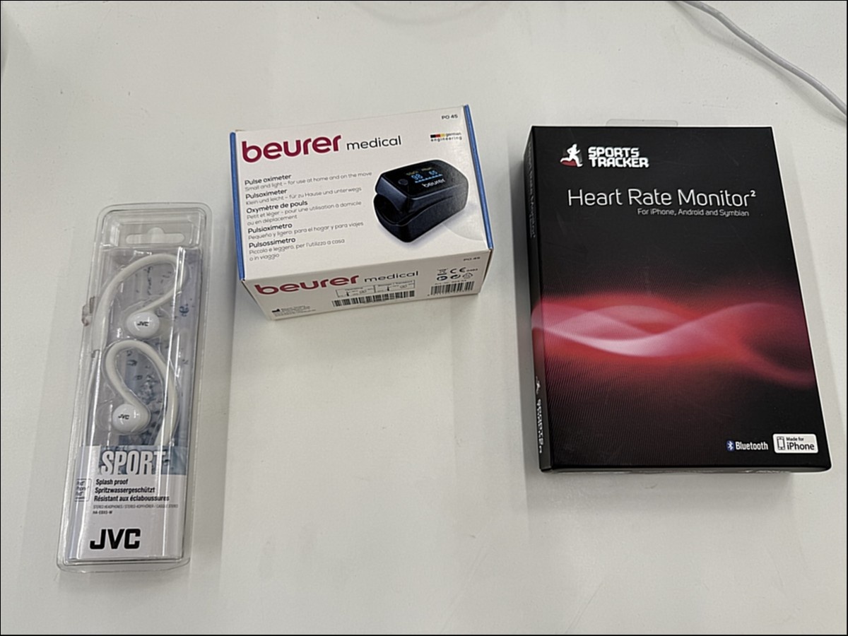 Sykemittari, urheilukuulokkeet ja happisaturaatio mittari