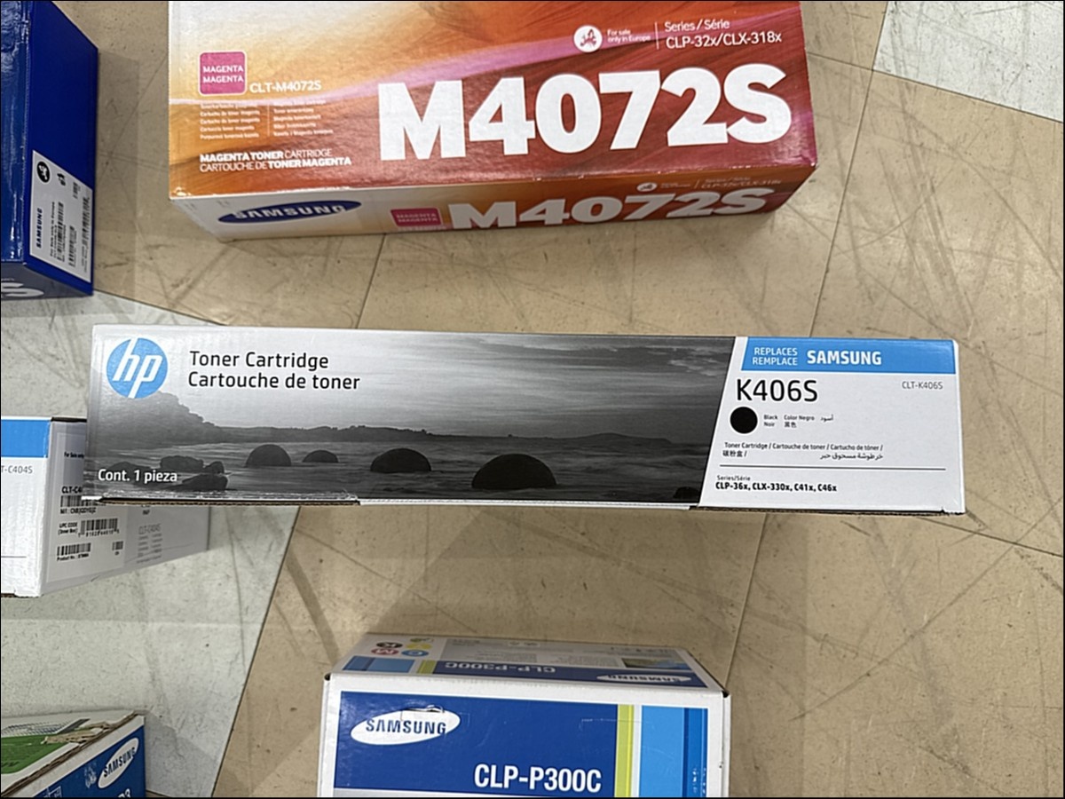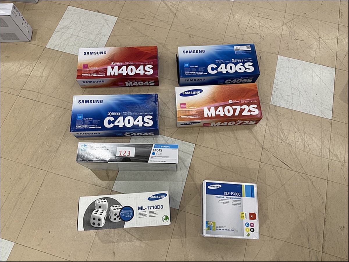 Myyntikohteet » 7. Apiankadun Konepistepojat Oy:n konkurssipesä (0967414-0), VALKEAKOSKI, 20.01.2026 » 123. Värikasetit Samsung tulostimille (8 kapppaletta)