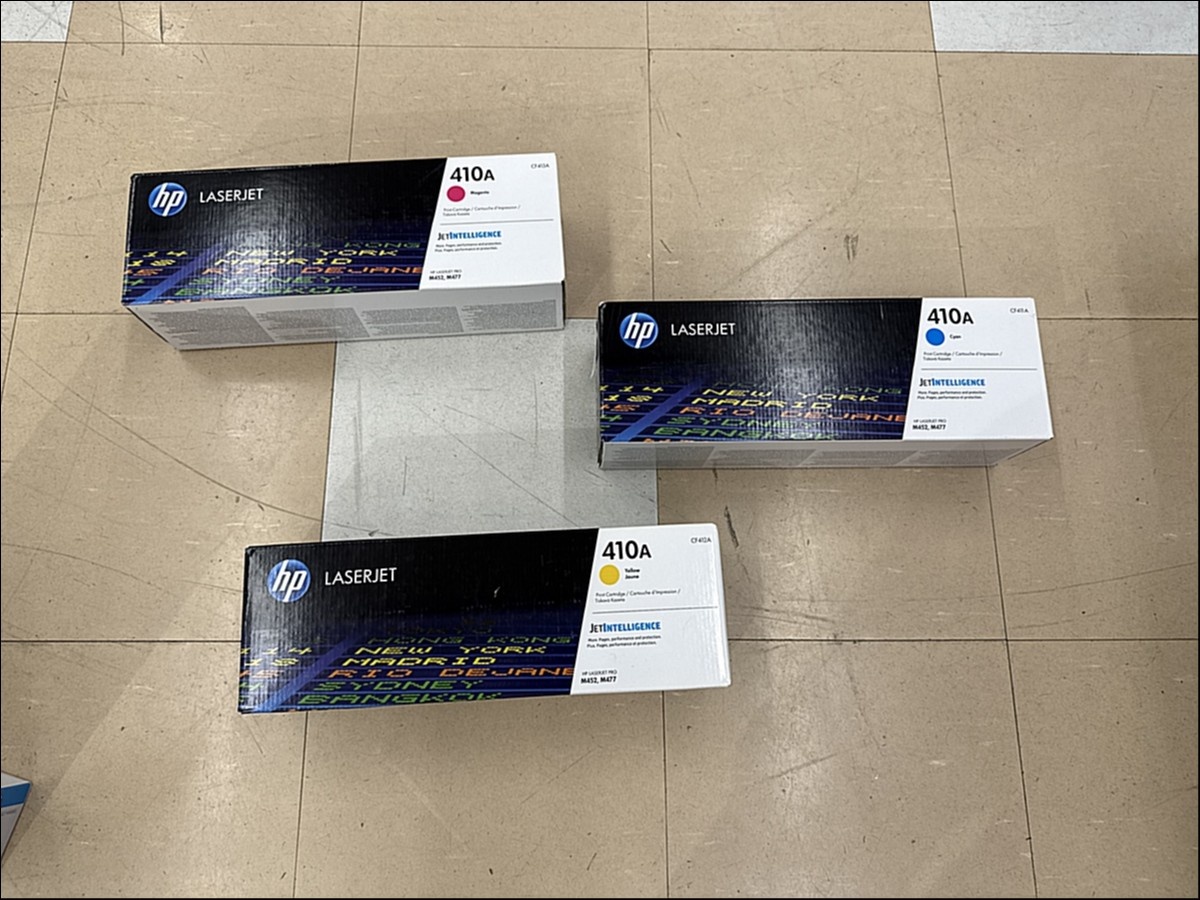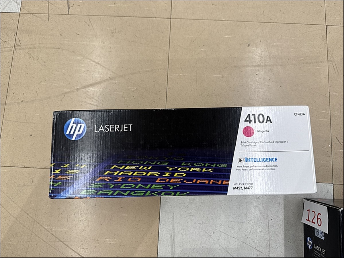 Myyntikohteet » 7. Apiankadun Konepistepojat Oy:n konkurssipesä (0967414-0), VALKEAKOSKI, 20.01.2026 » 126. LaserJet-värikasetit HP 410A (3 kappaletta)