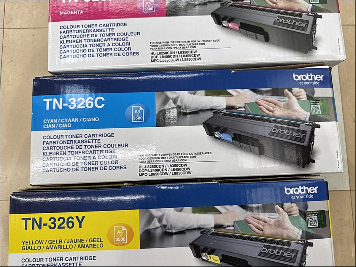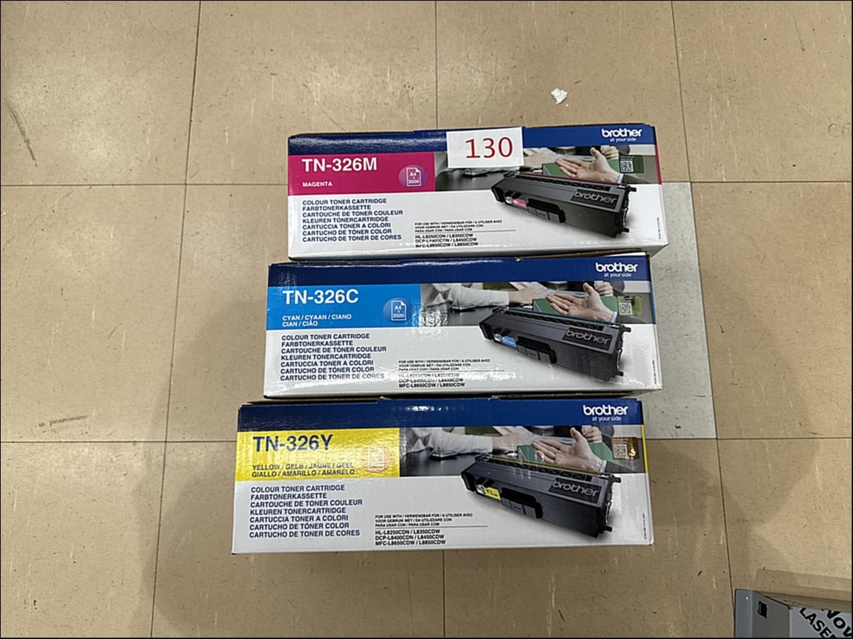 Myyntikohteet » 7. Apiankadun Konepistepojat Oy:n konkurssipesä (0967414-0), VALKEAKOSKI, 20.01.2026 » 130. Värikasetit Brother TN-326 (3 kappaletta)