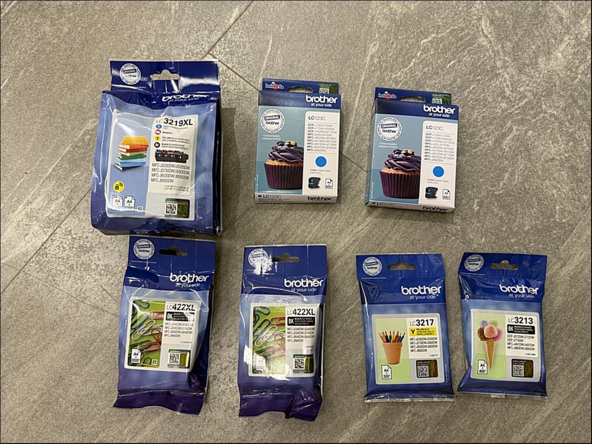 Myyntikohteet » 7. Apiankadun Konepistepojat Oy:n konkurssipesä (0967414-0), VALKEAKOSKI, 20.01.2026 » 140. Mustekasetit Brother (7 kappaletta)