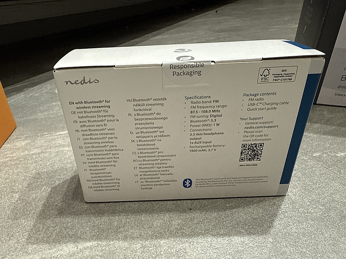 - Nedis RDFM2225BK kannettava FM-radio, bluetoothilla