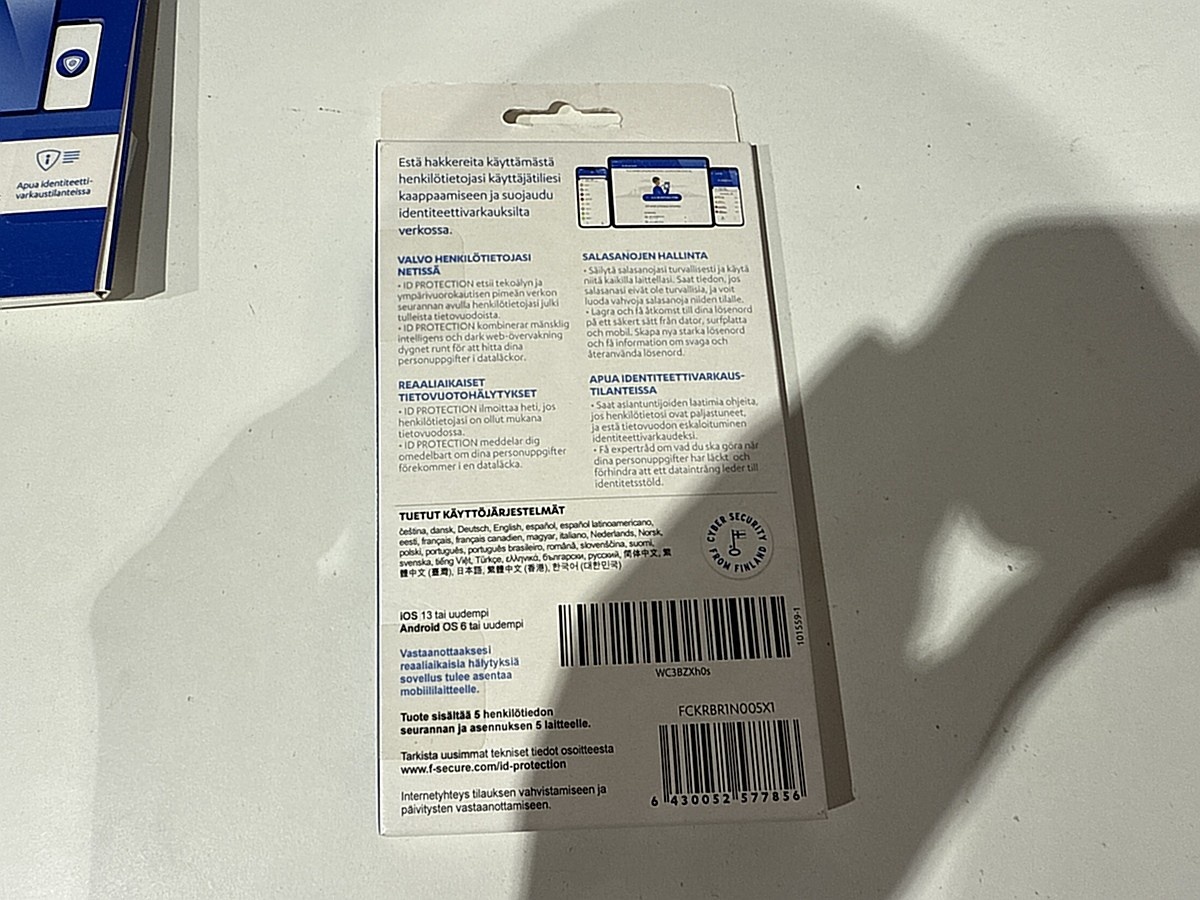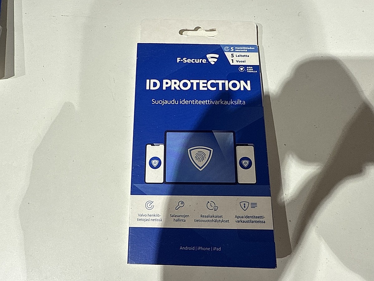 Myyntikohteet » 10. Apiankadun Konepistepojat Oy:n konkurssipesä (0967414-0), VALKEAKOSKI, 21.01.2026 » 190. Tietoturvaohjelmistopaketit F-Secure ID Protection (32 kappaletta)