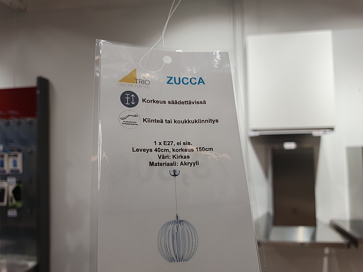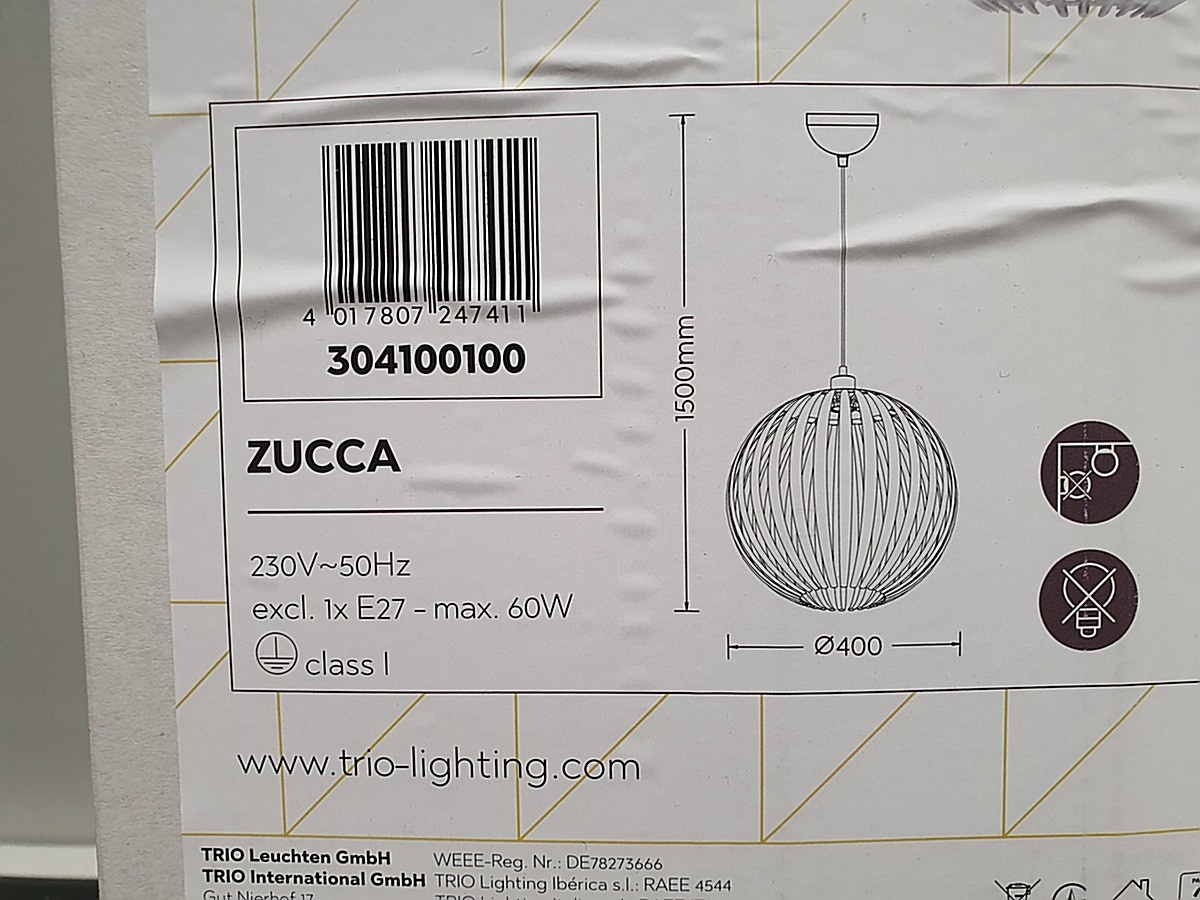 Myyntikohteet » 11. Apiankadun Konepistepojat Oy:n konkurssipesä (0967414-0), VALKEAKOSKI, 21.01.2026 » 201. Riippuvalaisin Trio Zucca (2 kappaletta)