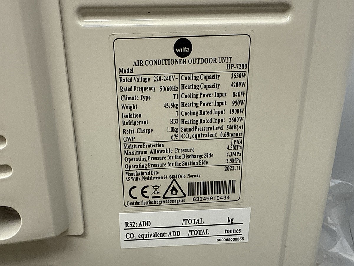 Myyntikohteet » 11. Apiankadun Konepistepojat Oy:n konkurssipesä (0967414-0), VALKEAKOSKI, 21.01.2026 » 202. Ilmalämpöpumppu Wilfa HP 7200