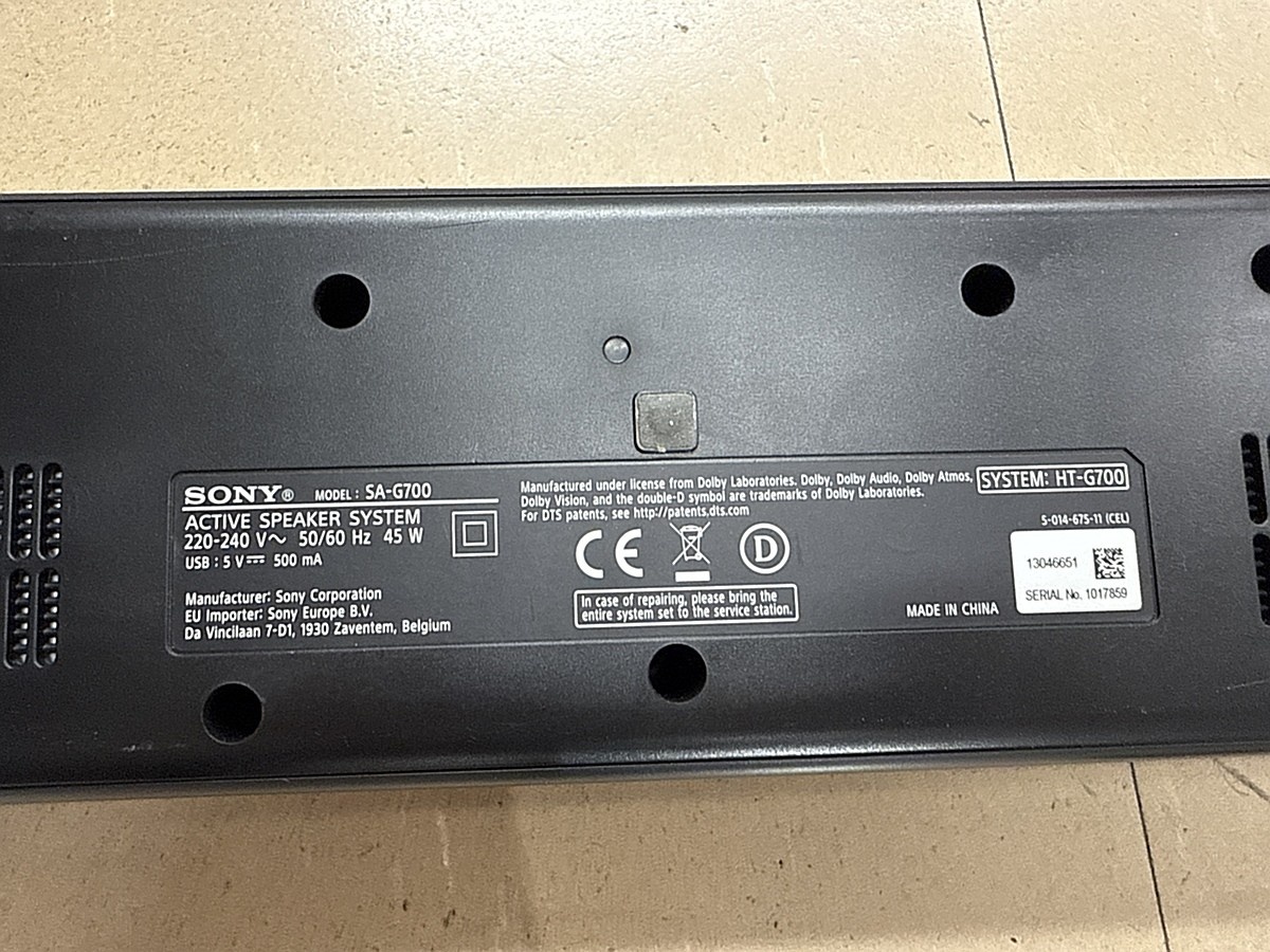 Myyntikohteet » 11. Apiankadun Konepistepojat Oy:n konkurssipesä (0967414-0), VALKEAKOSKI, 21.01.2026 » 205. Soundbar subwooferilla Sony