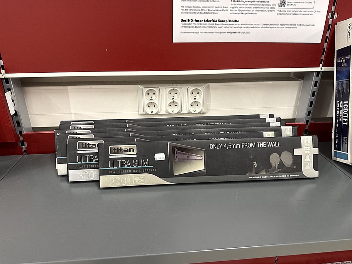 Myyntikohteet » 11. Apiankadun Konepistepojat Oy:n konkurssipesä (0967414-0), VALKEAKOSKI, 21.01.2026 » 210. Seinätelineet televisioille, tallentimet ja dvd soittimet