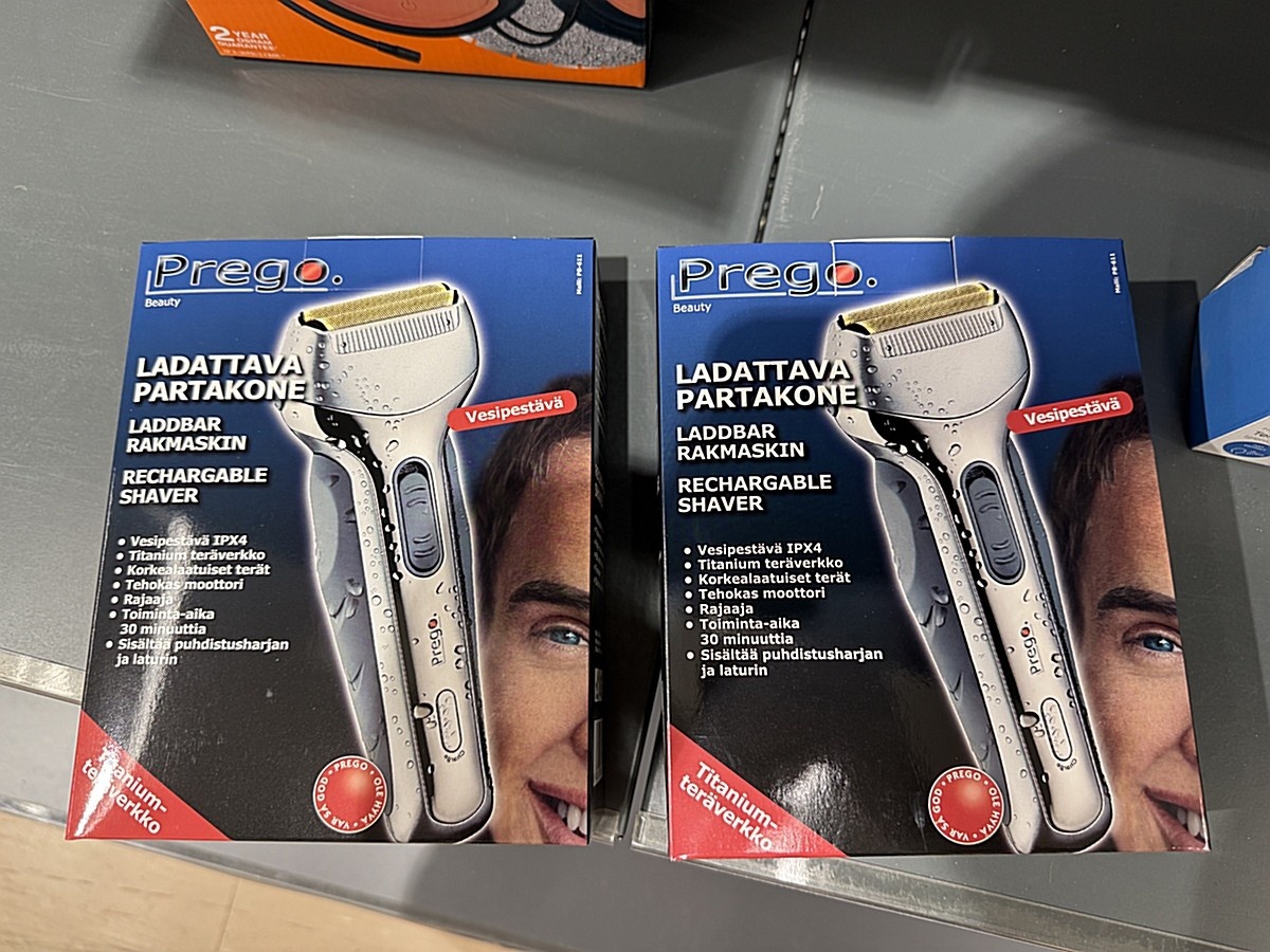 - ladattavat parranajokoneet Prego (2 kappaletta)