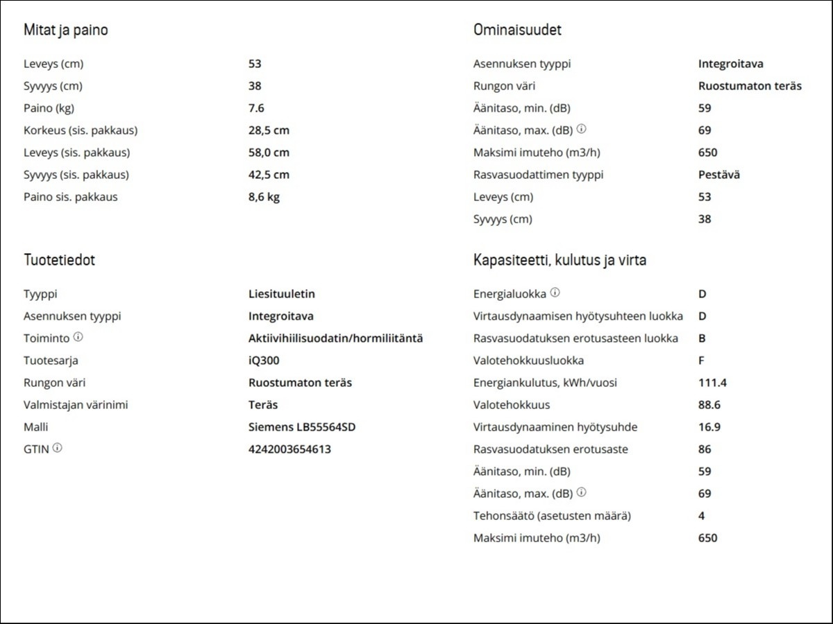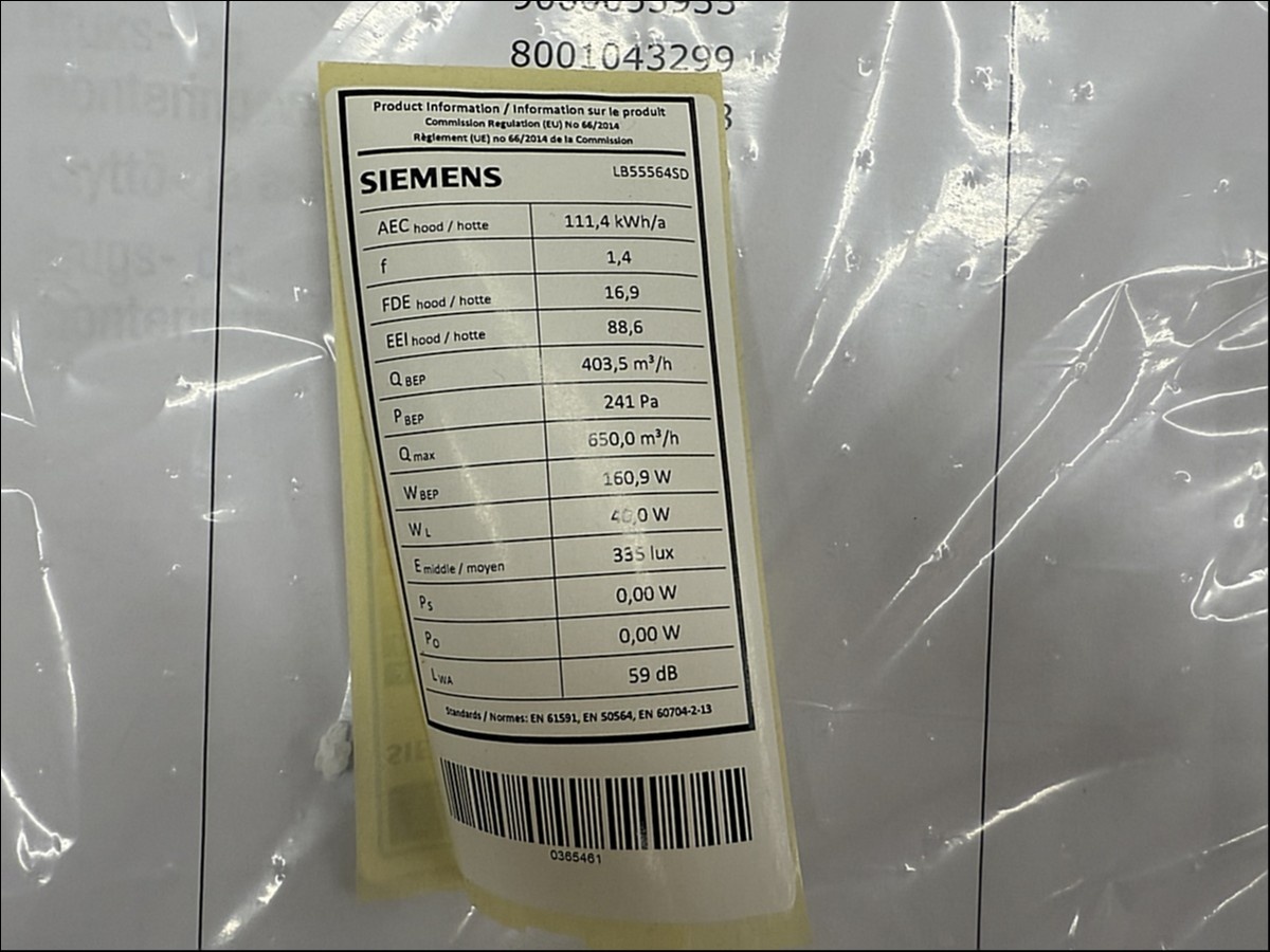 Myyntikohteet » 12. Apiankadun Konepistepojat Oy:n konkurssipesä (0967414-0), VALKEAKOSKI, 24.01.2026 » 223. Liesituuletin Siemens LB55564SD