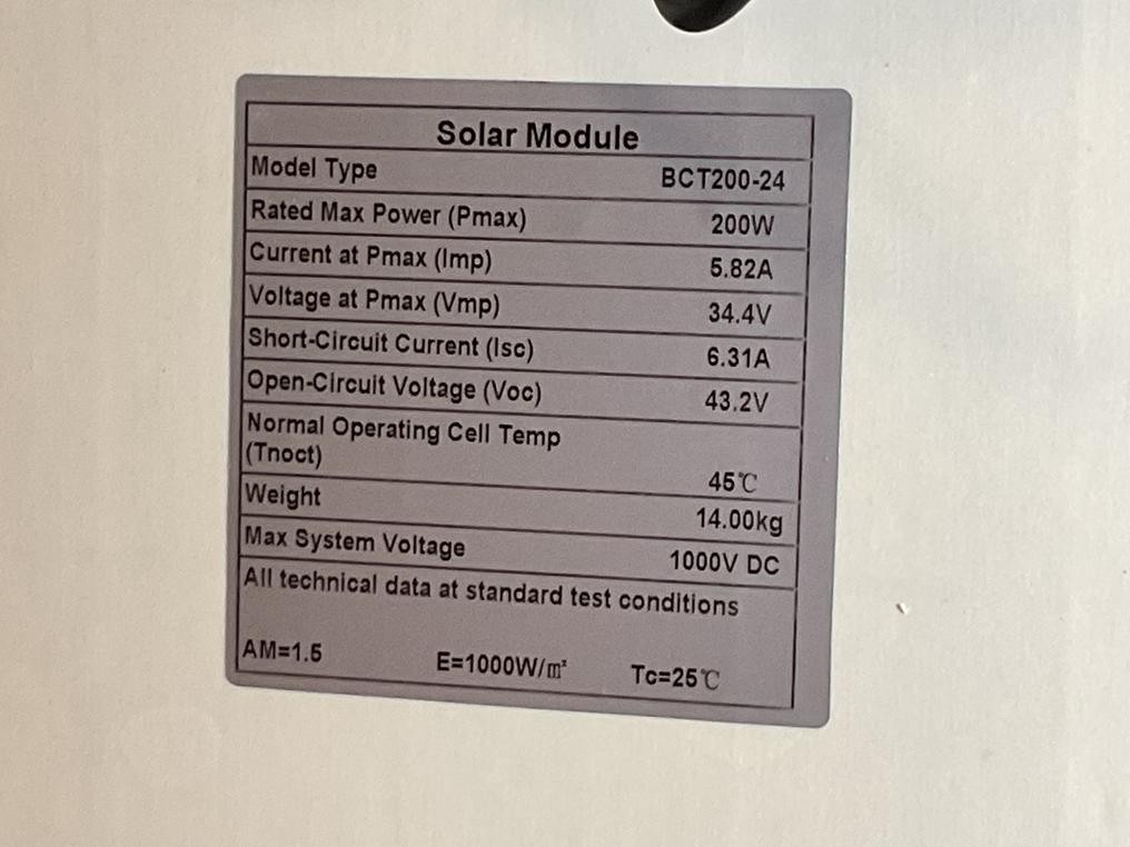 Rated Max Power (Pmax) 200W