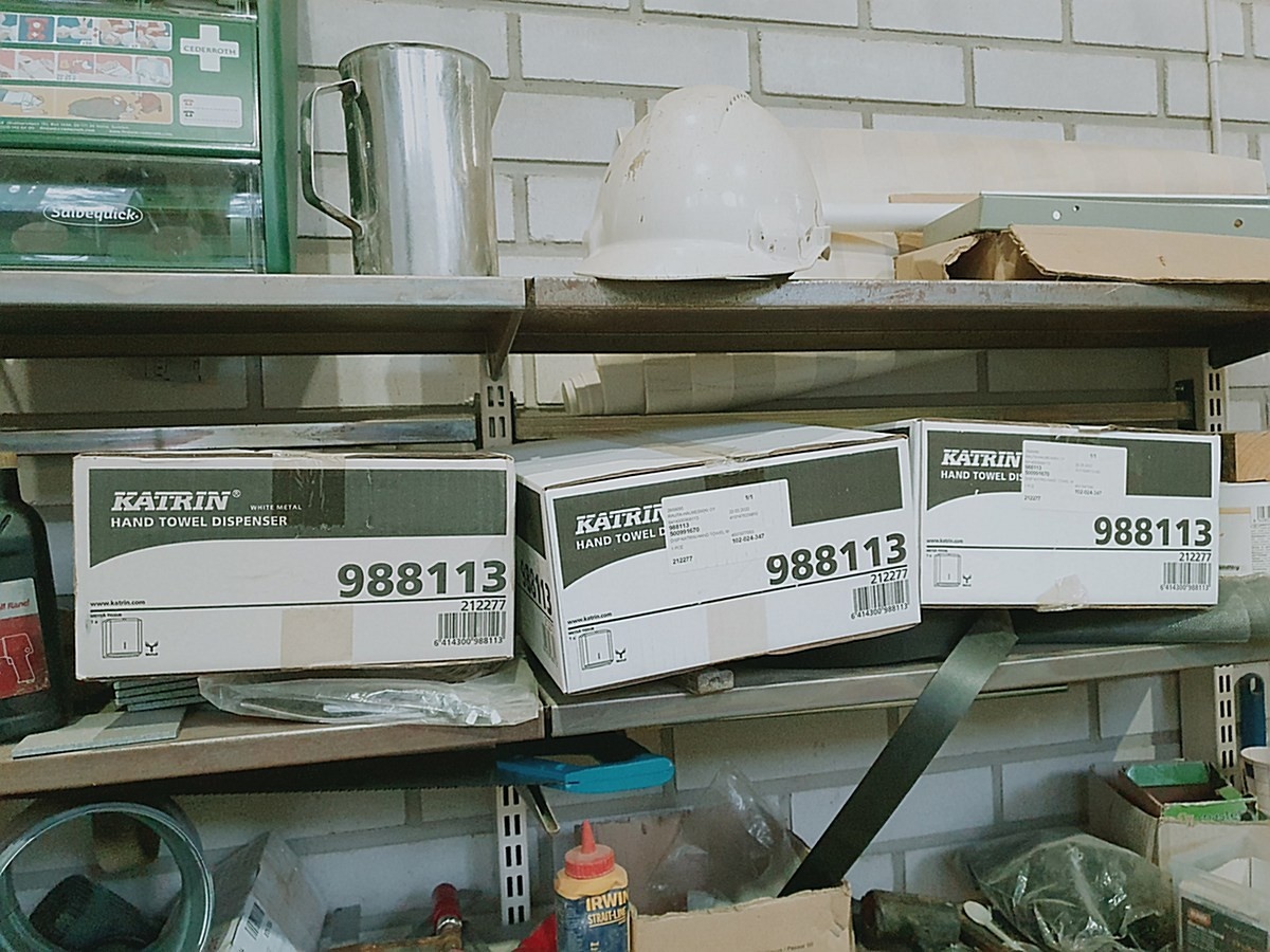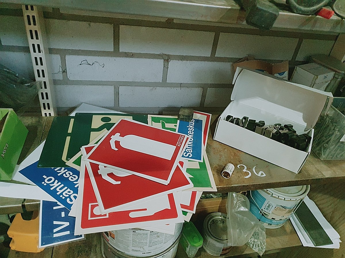Myyntikohteet » 2. Rakennus-Salama Oy:n KONKURSSIPESÄ (0831242-0), TURKU, 26.01.2026 » 36. Hyllyn tavarat (ensiapuasema, käsipaperitelineet, opastekyltit ym)