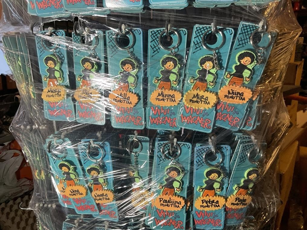 Myyntikohteet » 1. MellaFix Tmi:n konkurssipesä, PIIKKIÖ (3240001-7), 26.01.2026 » 08. Viivi ja Wagner avaimenperiä erilaisilla teksteillä yhteensä 84 laatikkoa + teline
