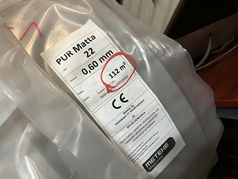 Myyntikohteet » 5. IV-Pelti Luuri Oy:n konkurssipesä, LOIMAA (1637489-1), 28.01.2026 » V36. Peltirulla 600 mm / 112 m² / PUR Matta 22