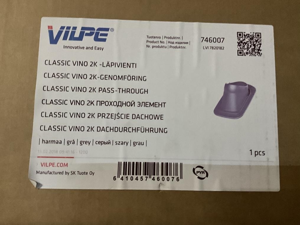 Myyntikohteet » 6. IV-Pelti Luuri Oy:n konkurssipesä, LOIMAA (1637489-1), 02.02.2026 » V56. Classic vino 2k -läpiviennit Vilpe Vent (harmaa) 8 kappaletta + classic -läpivientisarja punainen Vilpe Vent