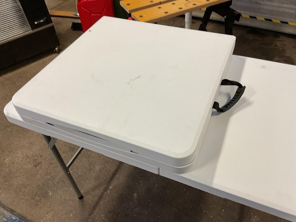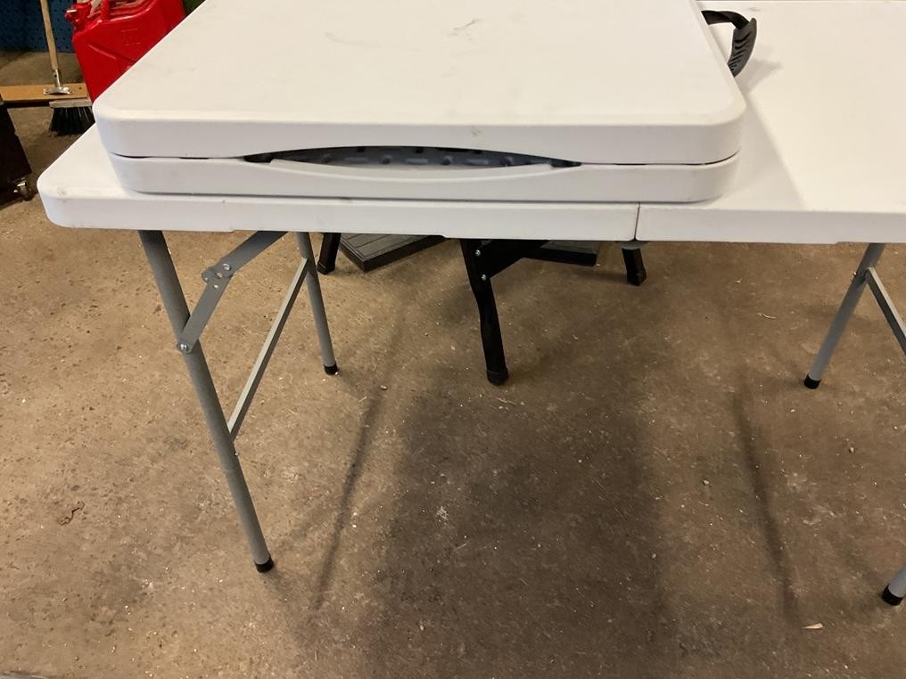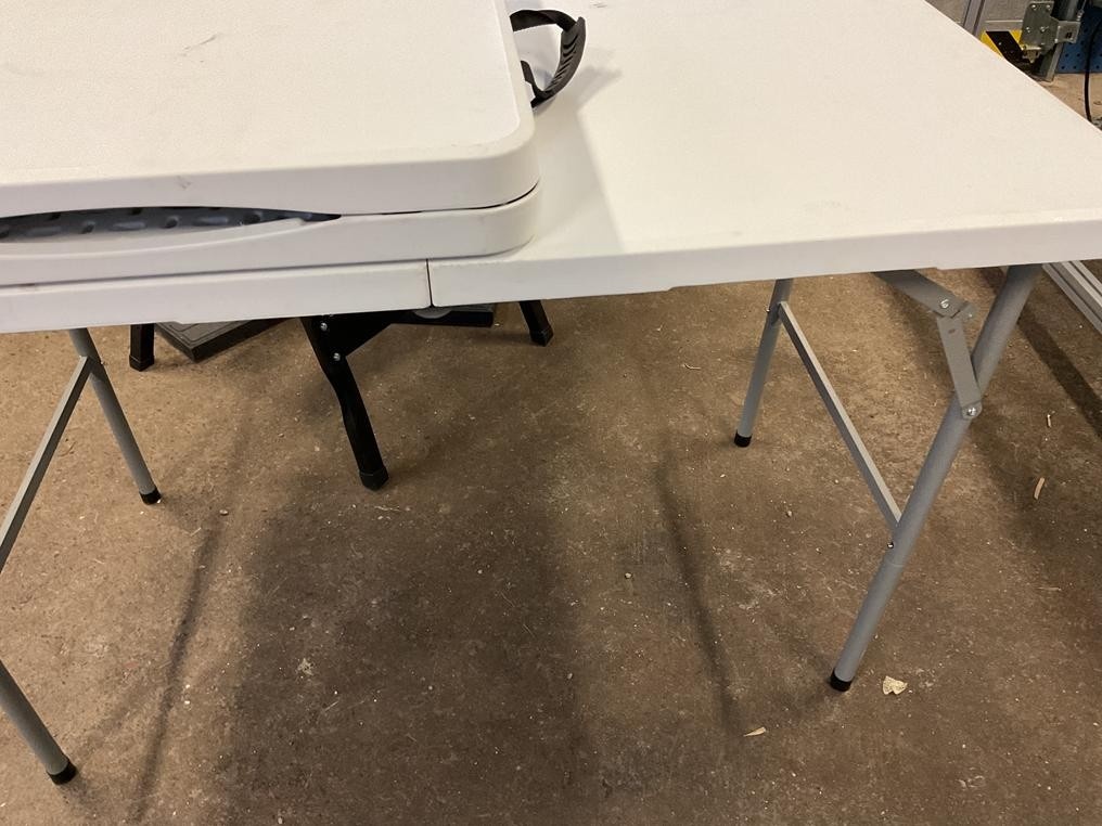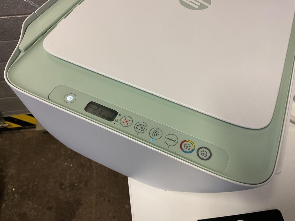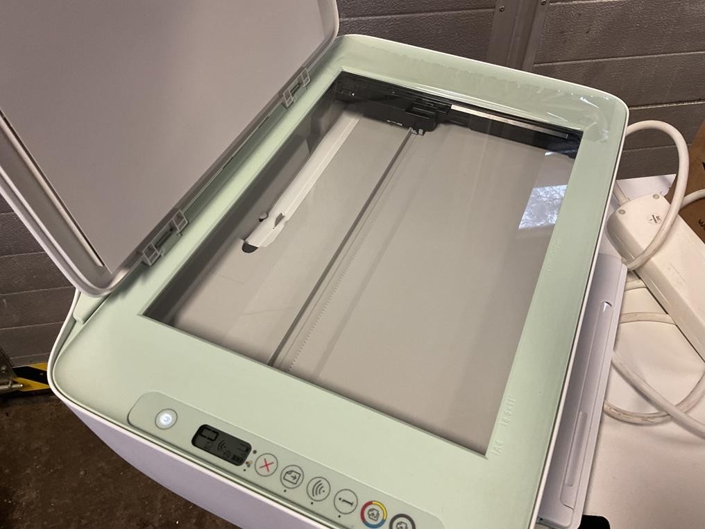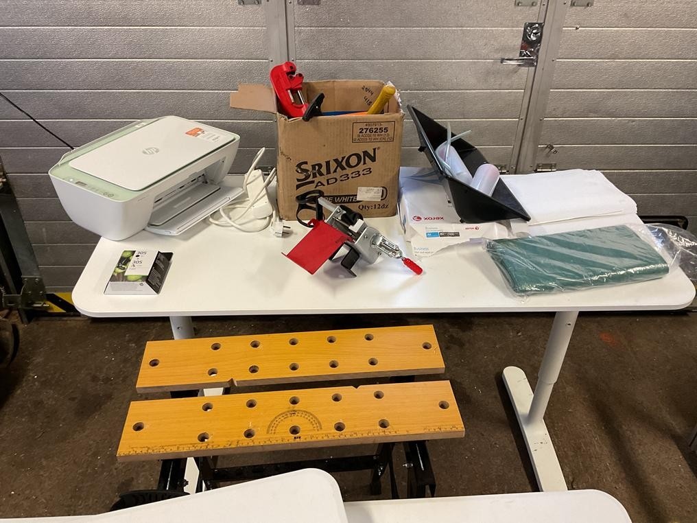 Myyntikohteet » 1. Golfway Oy:n konkurssipesä, NOUTO FORSSA (3360882-1), 26.01.2026 » 24. Tulostin HP DeskJet 2722e, valkoinen pöytä + pöydällä olevat tarvikkeet, taittopöydät 2 kappaletta, työtaso