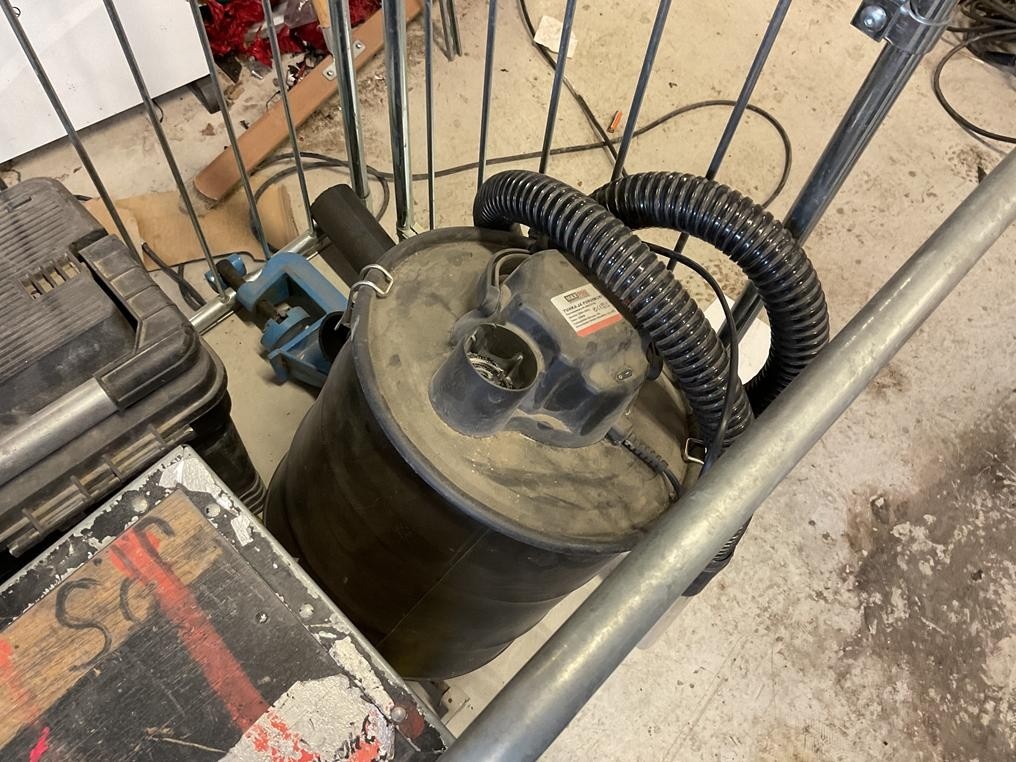 2. Vaunussa olevat työkalulaatikot, tuhka- ja puruimuri, alumiinitaso