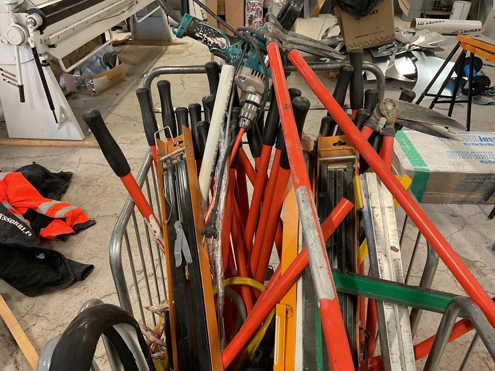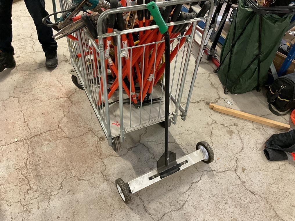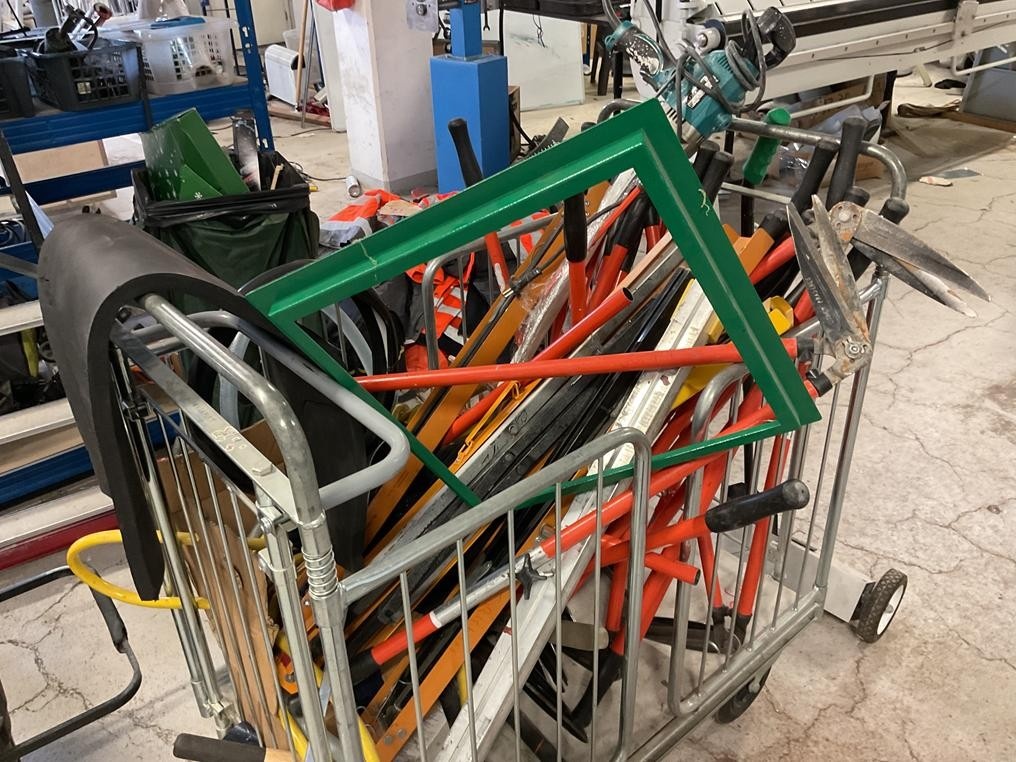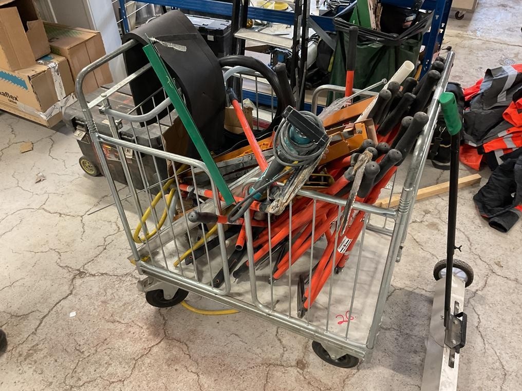 Myyntikohteet » 1. Teollisuus Eristys Sorri Oy:n konkurssipesä, TURKU (2230135-7), 02.02.2026 » 26. Pakettivaunu, vaunussa olevat ruohosakset 6 kappaletta ym, magneettinen lakaisija/lastunkerääjä