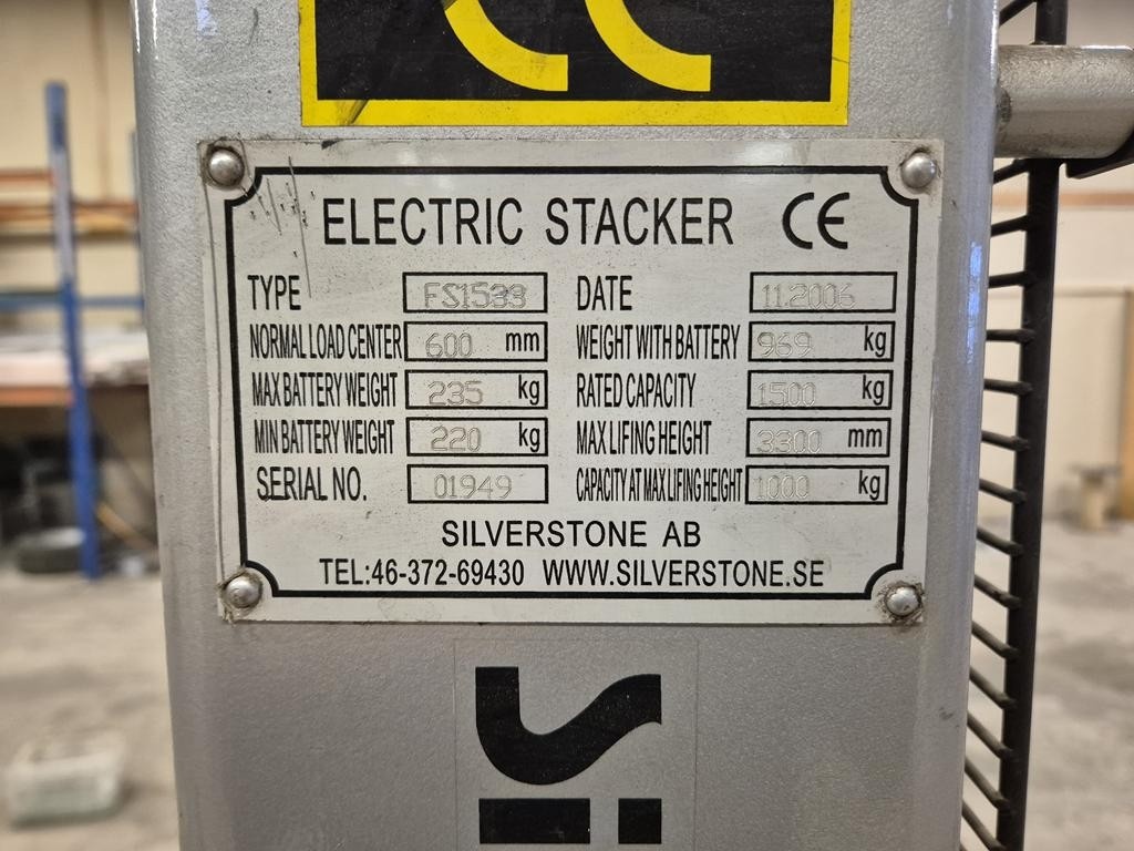 Myyntikohteet » Kauhavan Sähkötyö Oy:n konkurssipesä, KAUHAVA (0947010-5), 02.02.2026 » 14. Pinoamisvaunu Silverstone FS1533 + laturi
