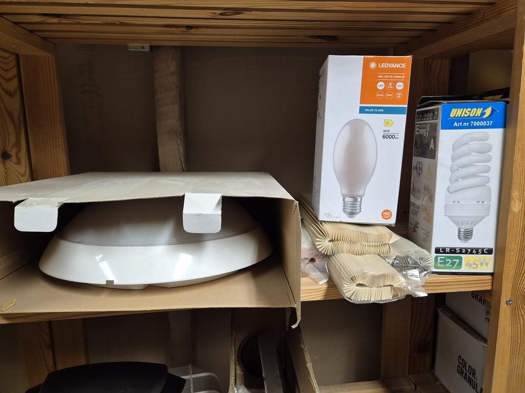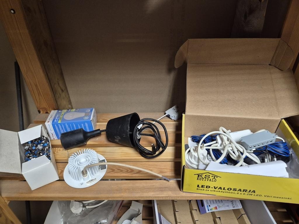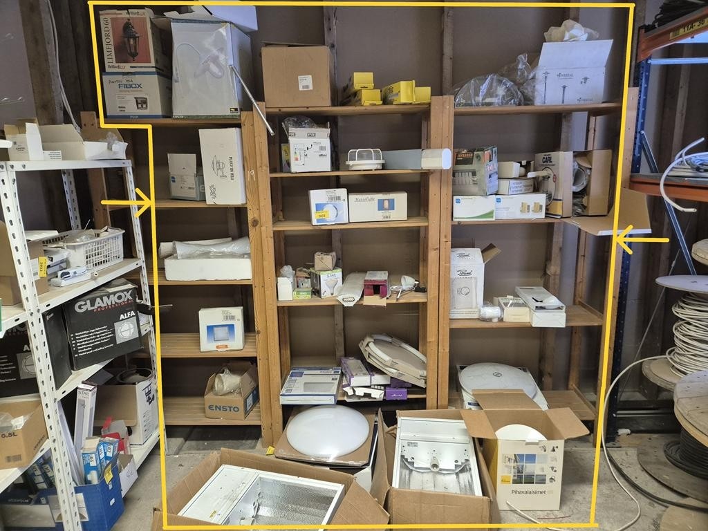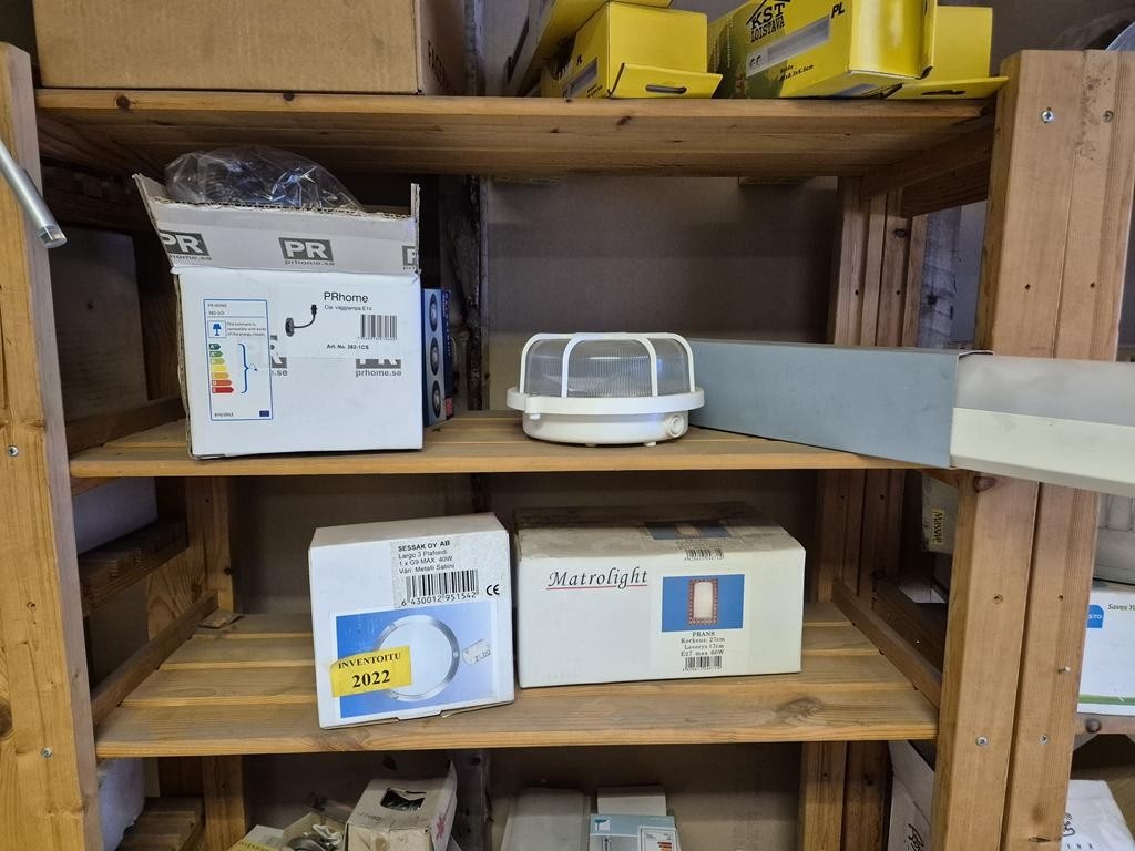 Myyntikohteet » Kauhavan Sähkötyö Oy:n konkurssipesä, KAUHAVA (0947010-5), 02.02.2026 » 18. Valaisimet + puiset hyllyt