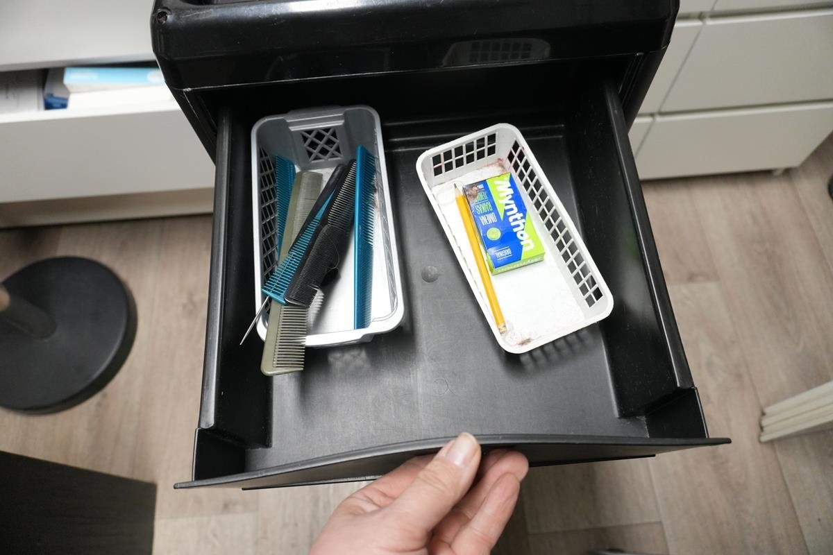 Myyntikohteet » Siluet Men & Women Oy:n konkurssipesä, YLIVIESKA (1997212-5), 03.02.2026 » 02. Kampaamokärry tavaroineen