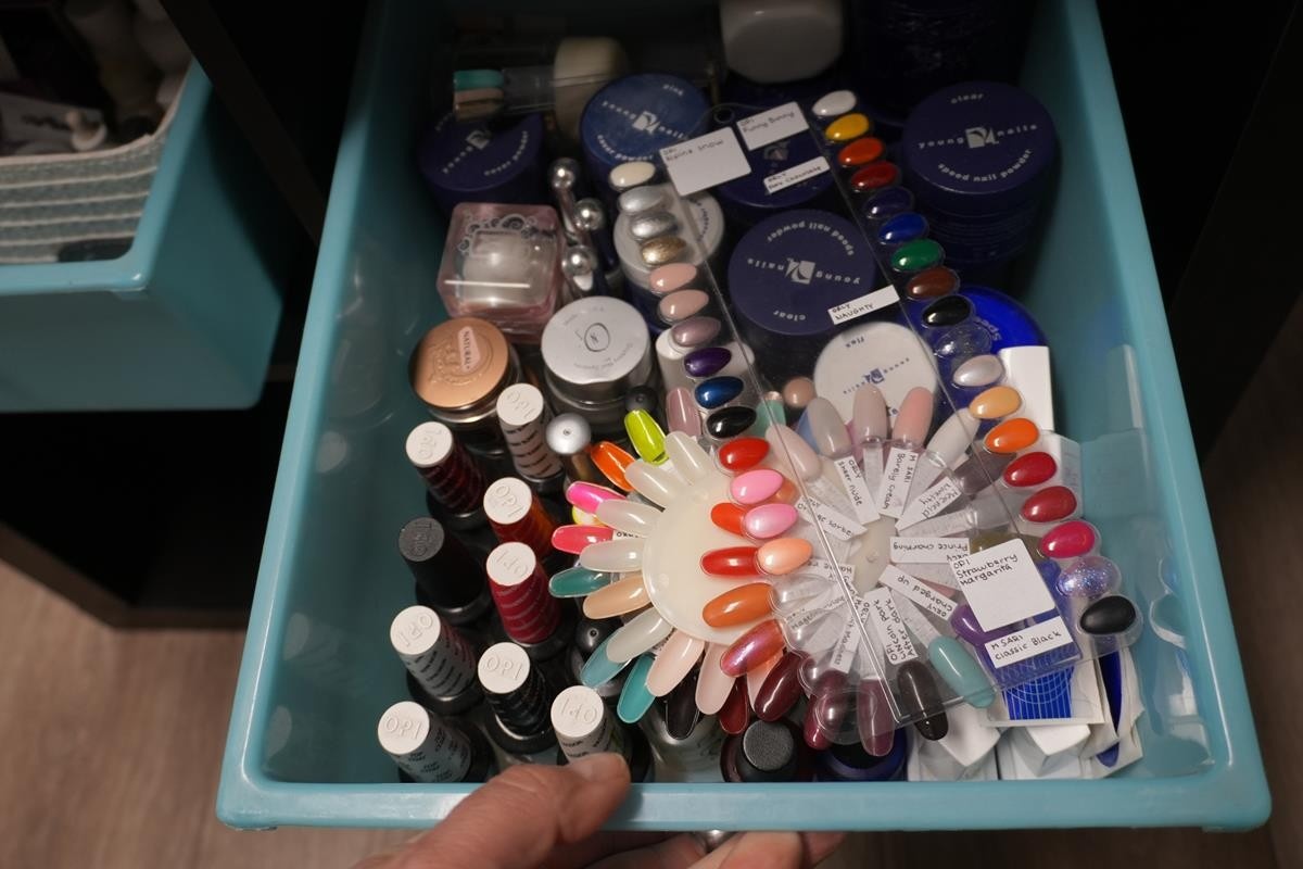 2. Laatikot sisältöineen (mm. kynsilakat)