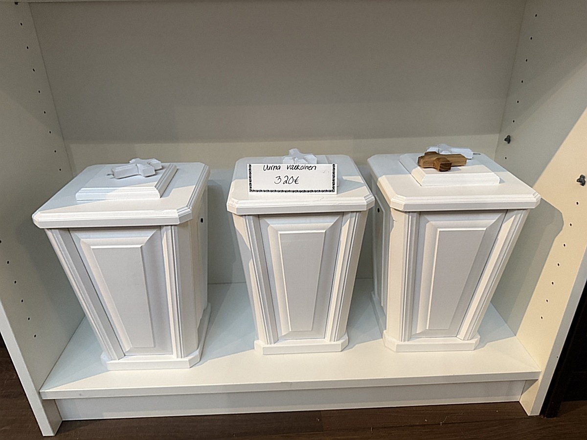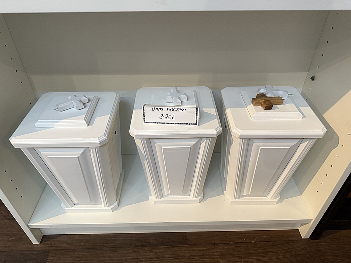 Myyntikohteet » 1. Olkkonen&Saloranta Oy:n konkurssipesä (2626655-2), VIRRAT, 09.02.2026 » 01. Uurnat (18 kappaletta) ja pienet arkut (3 kappaletta)