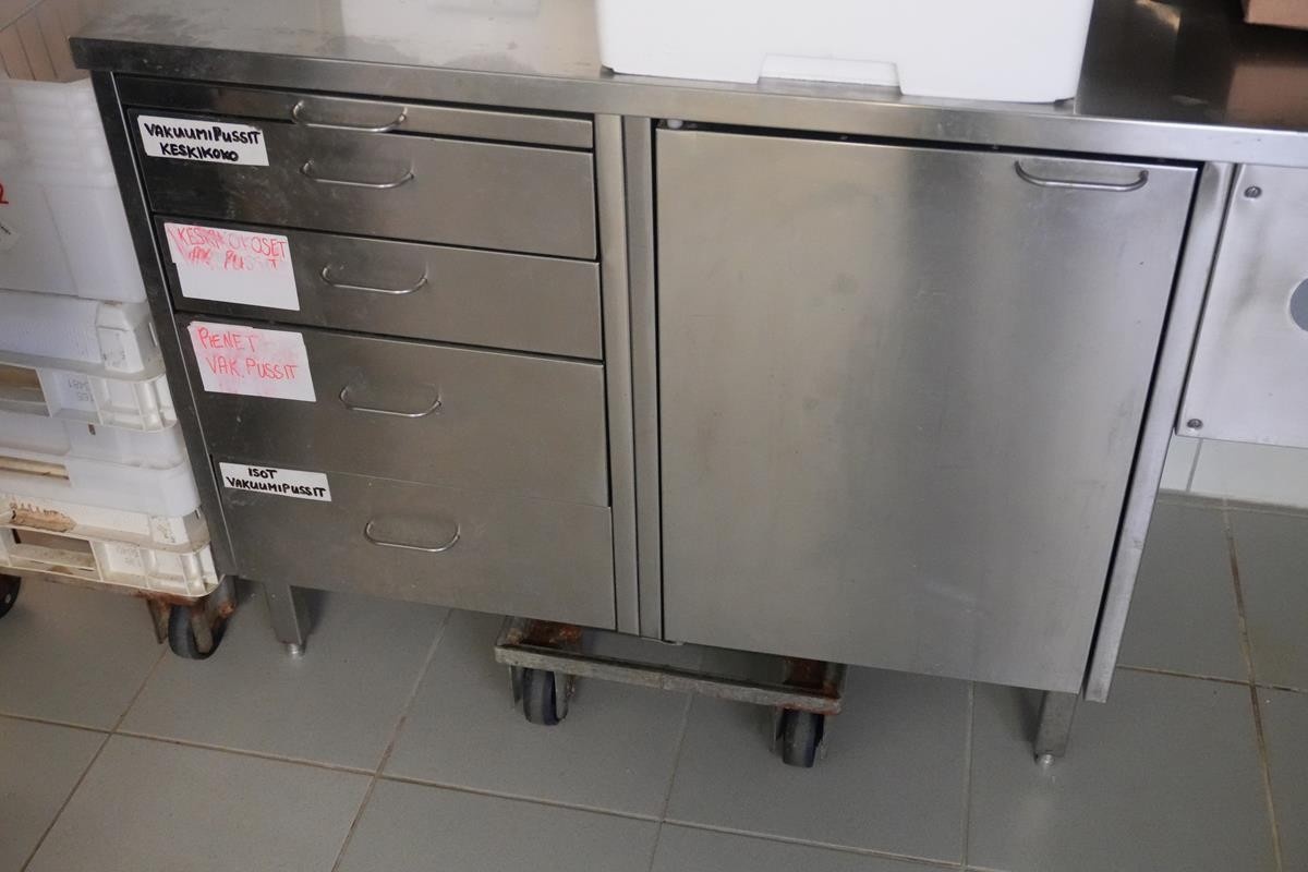 Myyntikohteet » 2. Kalatuote Annunen Oy:n konkurssipesä, PATTIJOKI (1860759-9), 04.02.2026 » 26. Rosteripöytä kaapilla ja laatikoilla