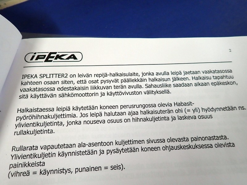 Huollettu ja testattu leivän repijä-halkaisulaite.