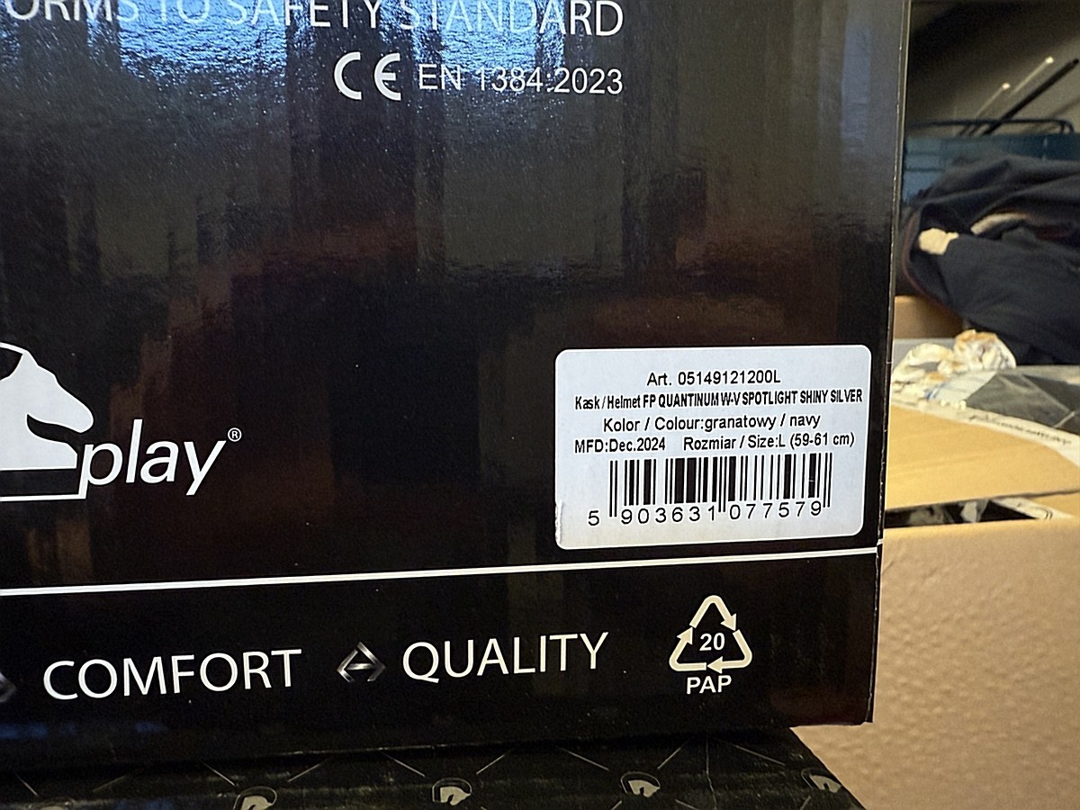 Myyntikohteet » 1. Menivek Oy:n konkurssipesä (3277335-8), KANGASALA, 09.02.2026 » 03. Ratsastus kypärät Fair Play Quantinum spotlight shiny silver (5 kappaletta)
