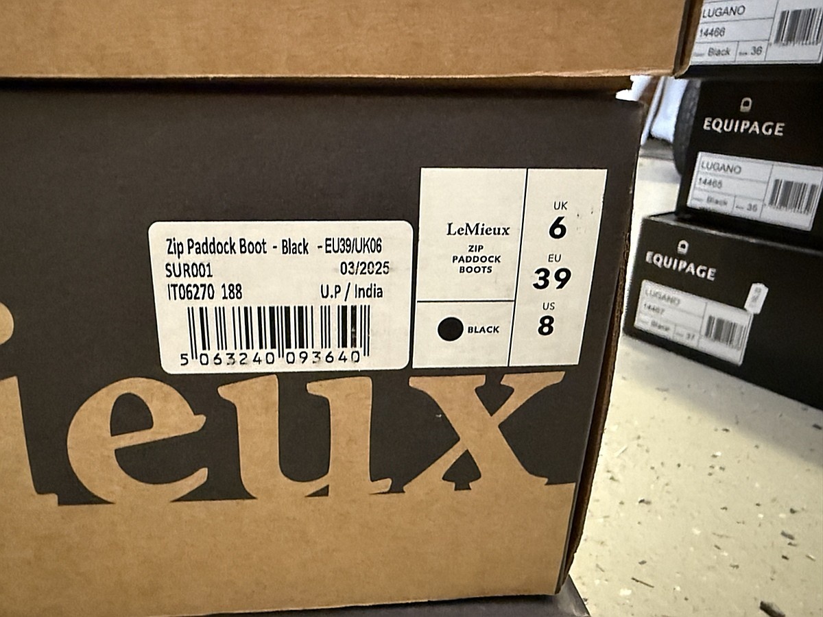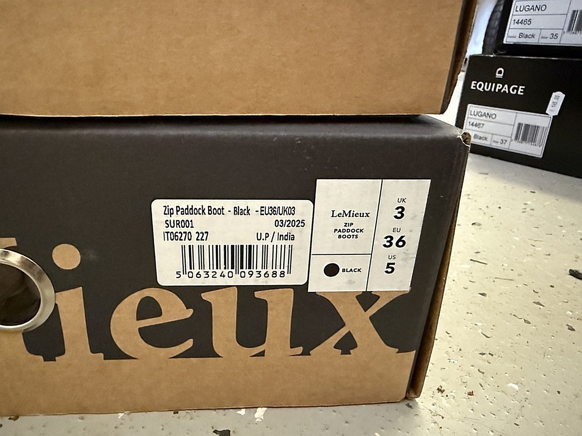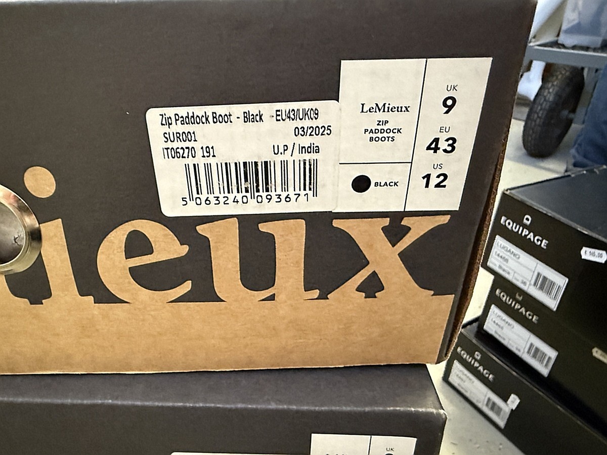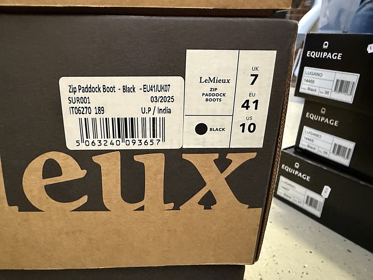 Myyntikohteet » 1. Menivek Oy:n konkurssipesä (3277335-8), KANGASALA, 09.02.2026 » 08. Ratsastuskengät Lemieux Zip Paddock Boot Black (5 kappaletta)