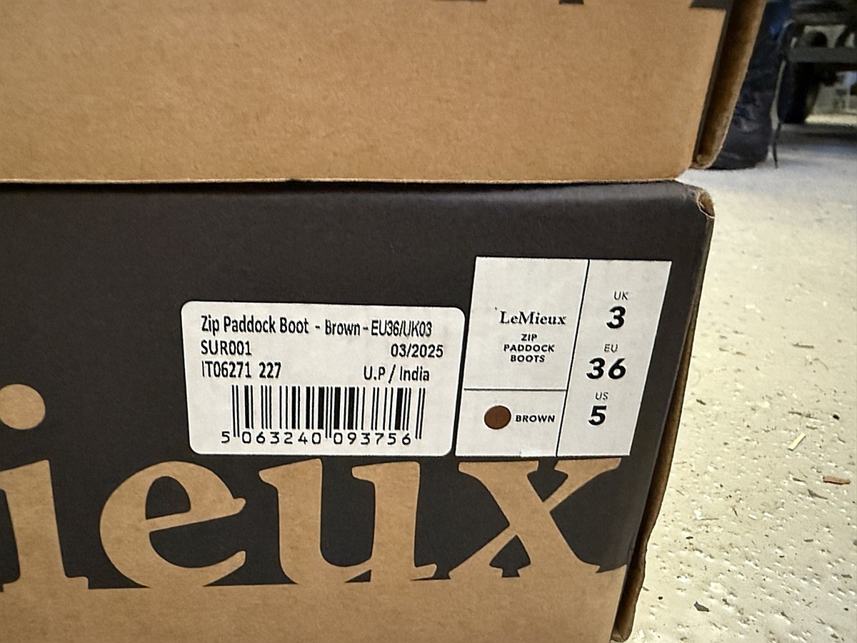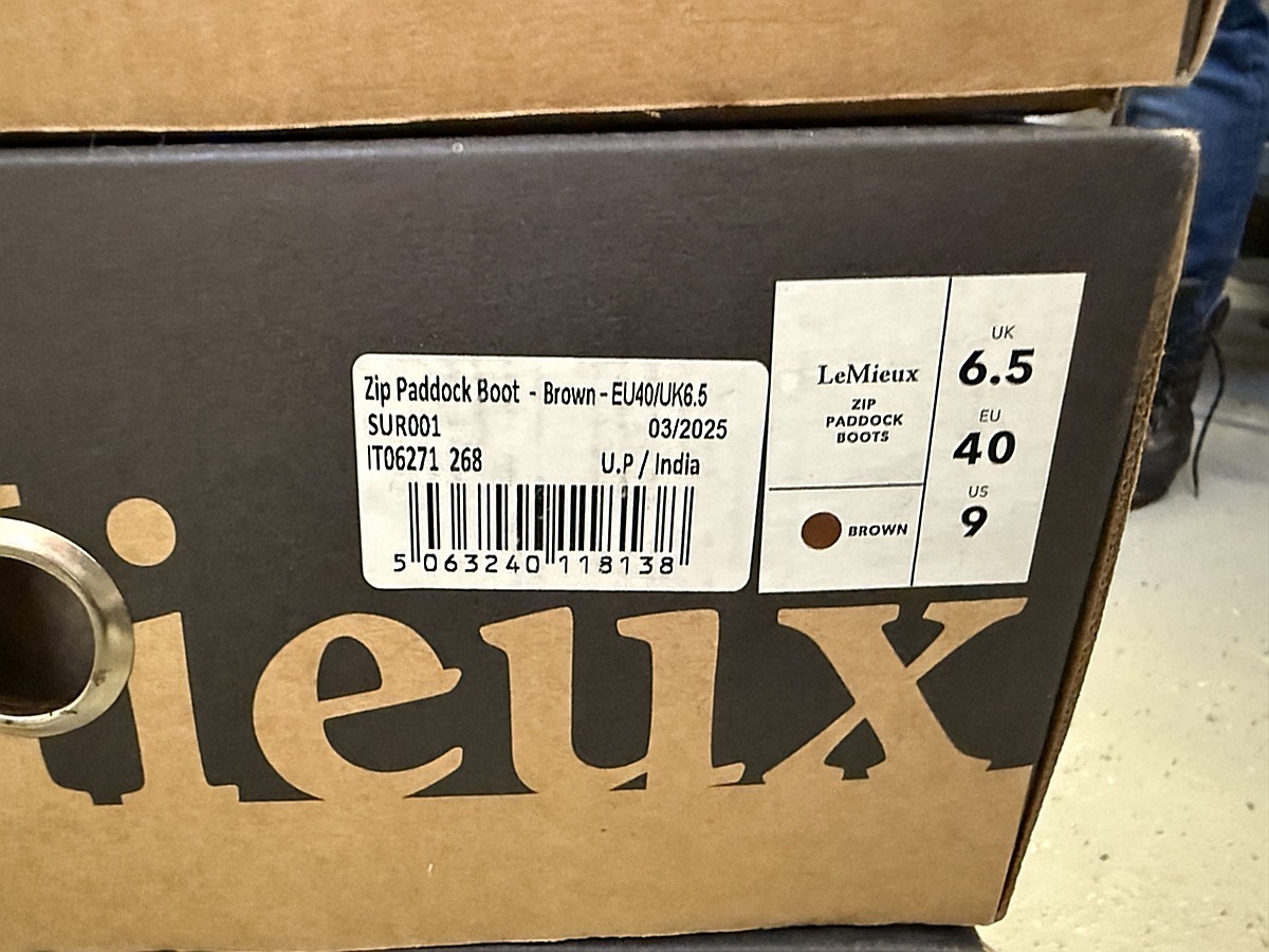 Myyntikohteet » 1. Menivek Oy:n konkurssipesä (3277335-8), KANGASALA, 09.02.2026 » 09. Ratsastuskengät Lemieux Zip Paddock Boot Brown (7 kappaletta)