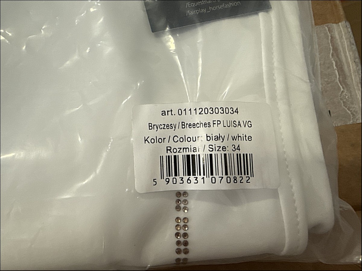 Myyntikohteet » 1. Menivek Oy:n konkurssipesä (3277335-8), KANGASALA, 09.02.2026 » 14. Ratsastushousut Fair Play riding breeches Luisa VG (5 kappaletta)