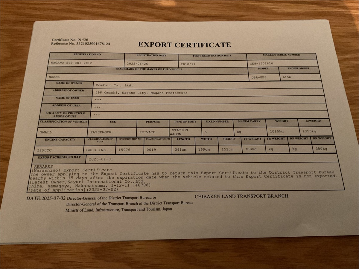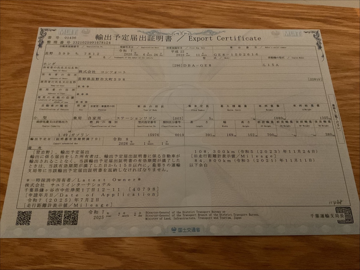 Ks. Auton vientitodistus (viimeiset kuvat)