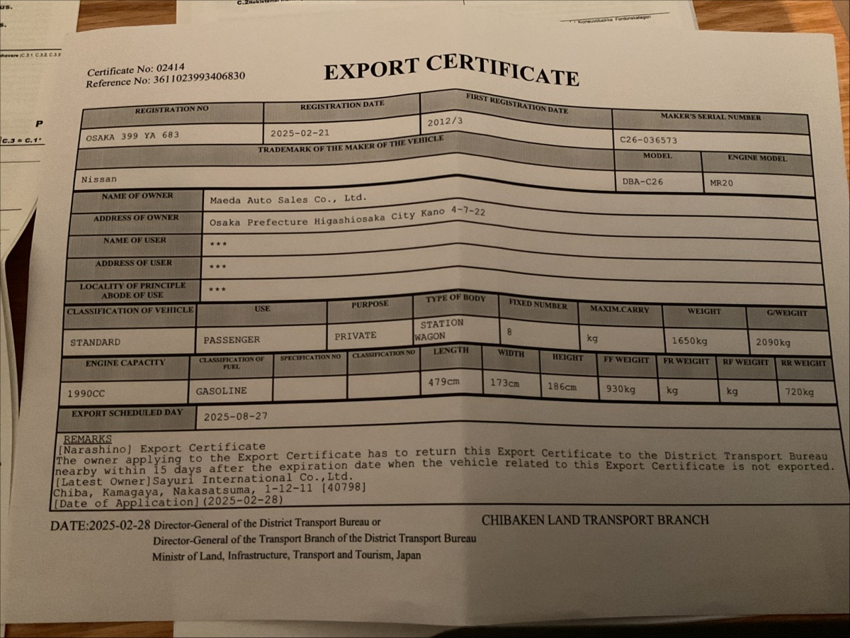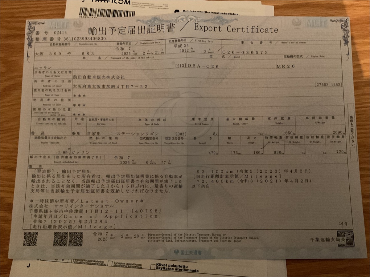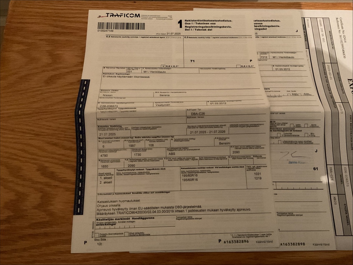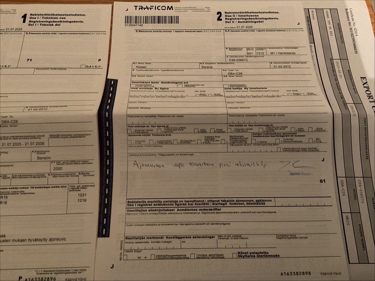 Ks. Auton vientitodistus (viimeiset kuvat)