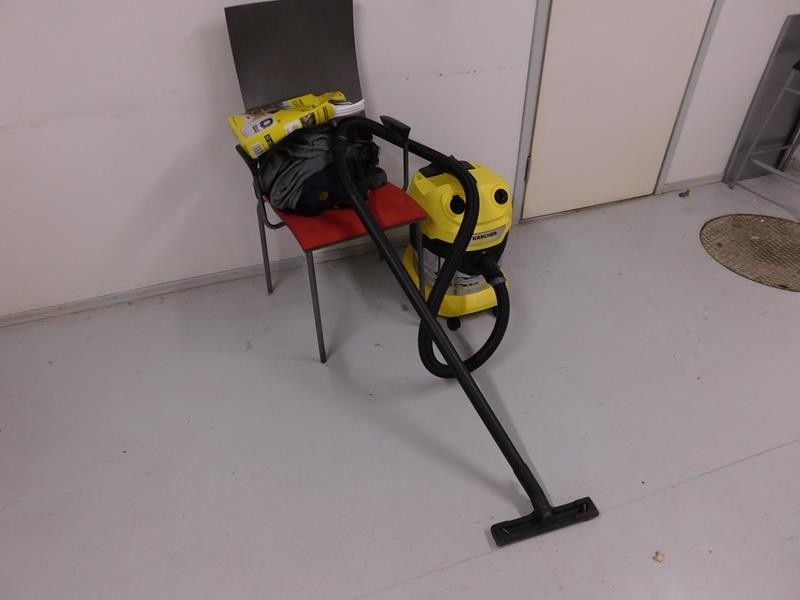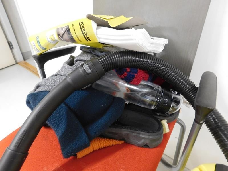 Kuntopyörä, Kärcher-imuri ja pusseja, tuolit 2 kpl, kello.