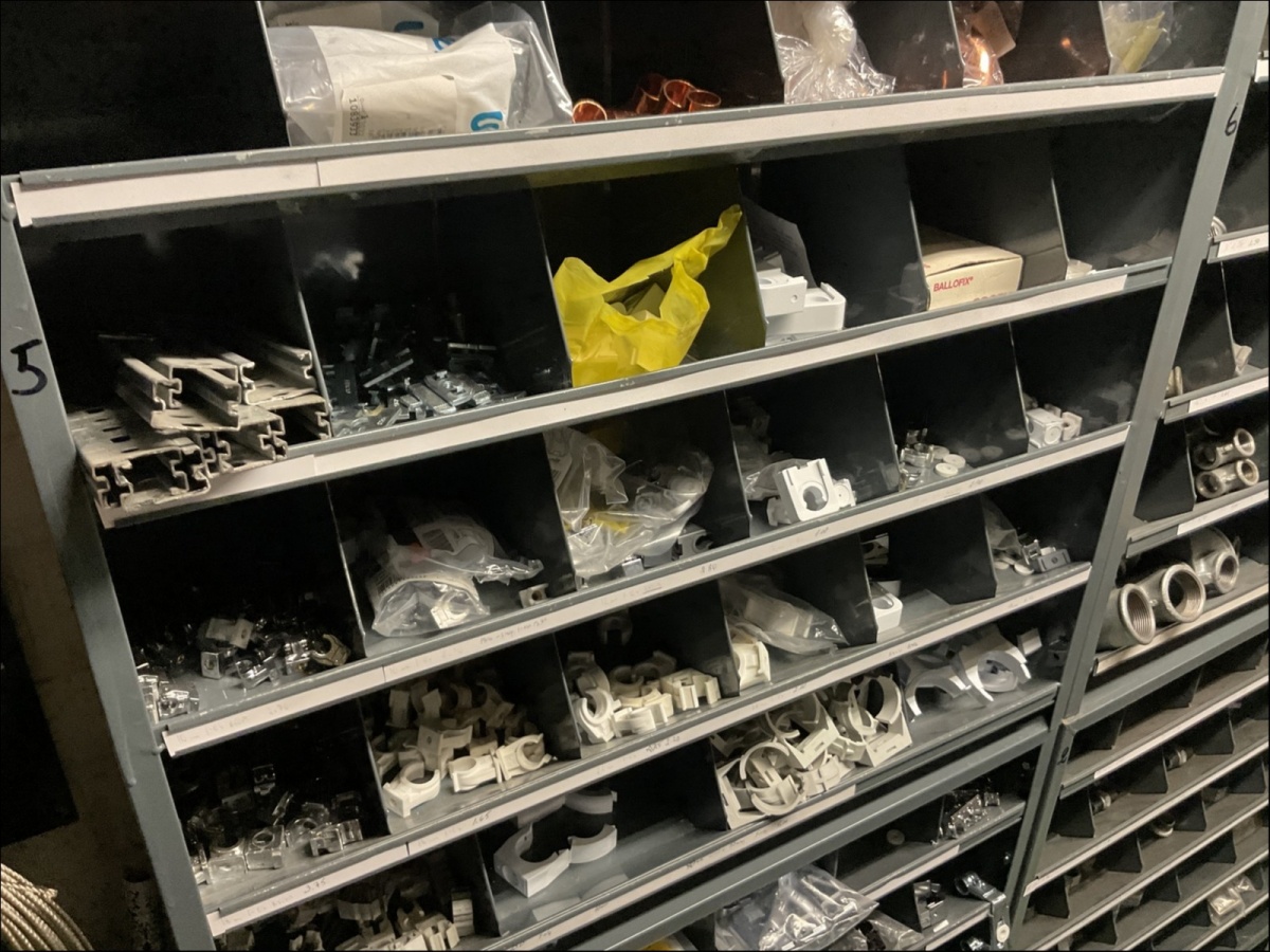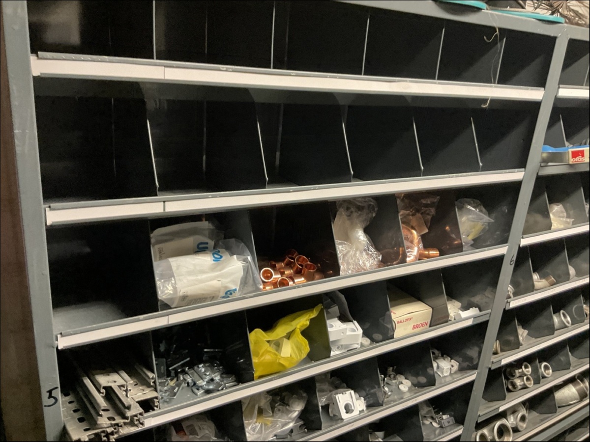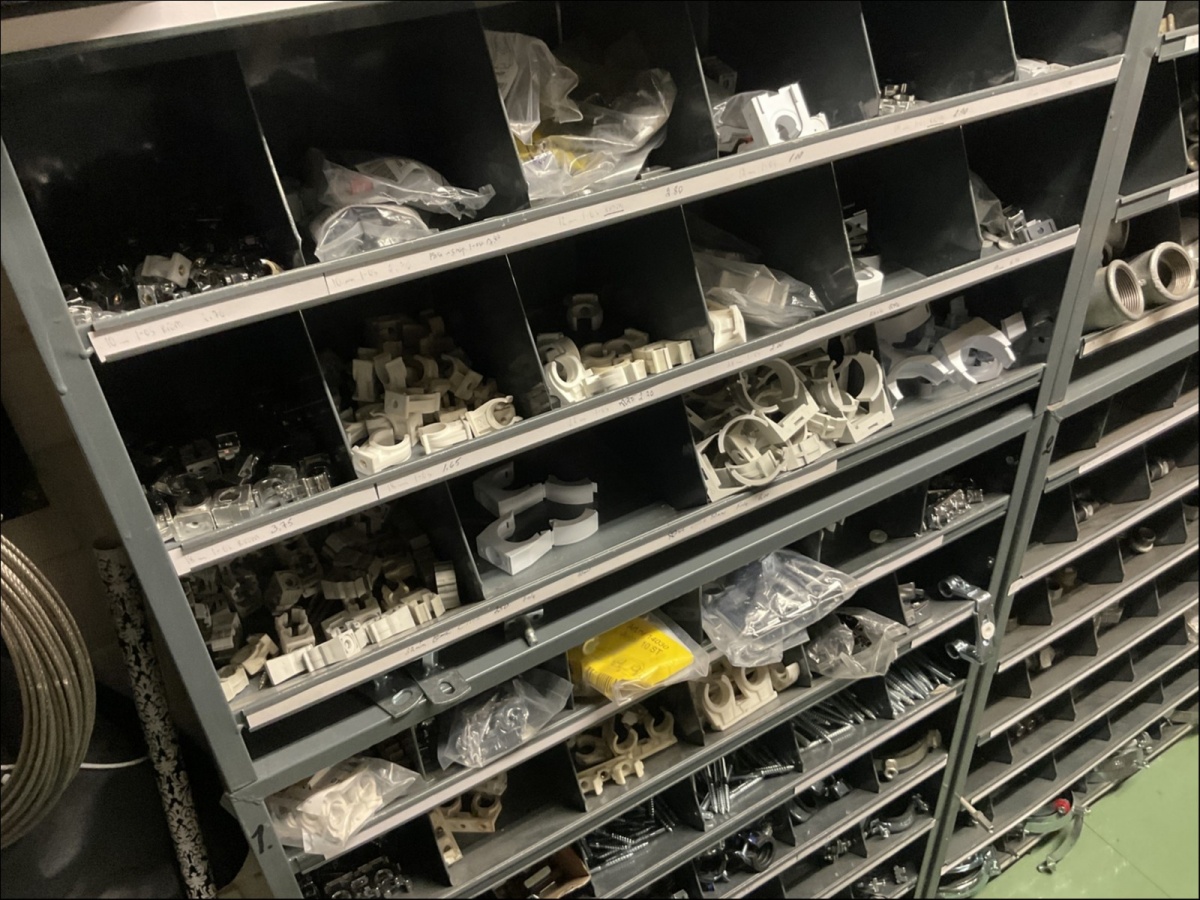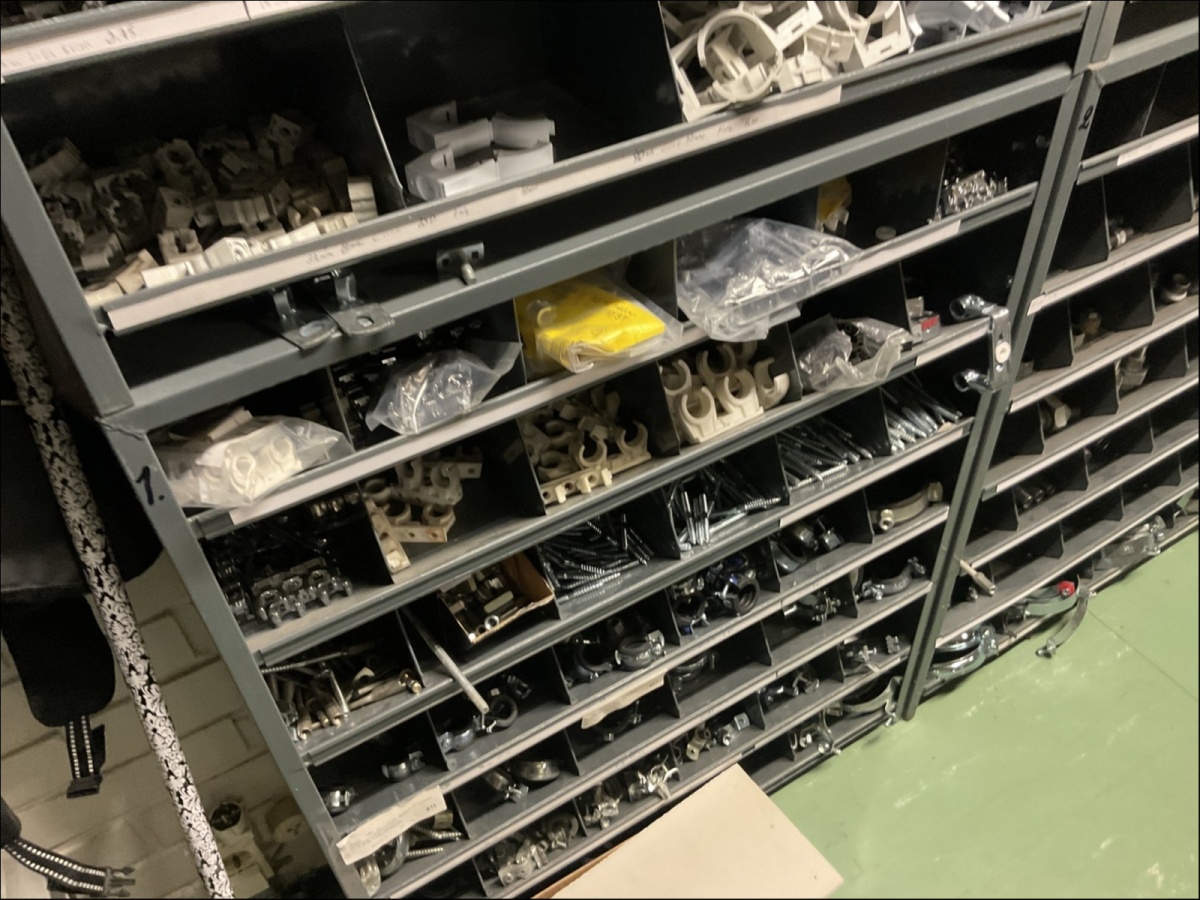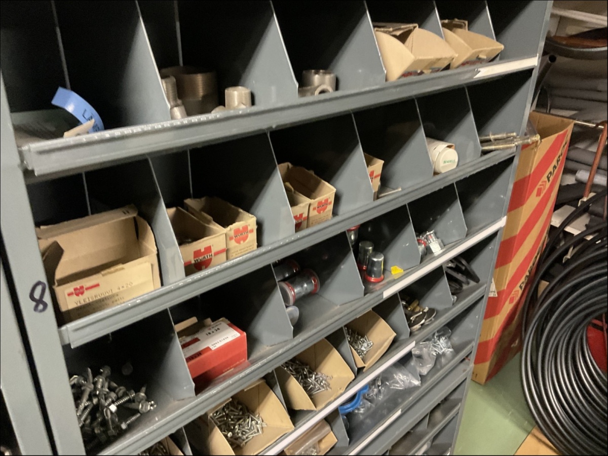 1. Kiinnikkeet ja kiinnitystarvikkeet, putkiliittimet ym. pientarvikkeet lokerikoissa
