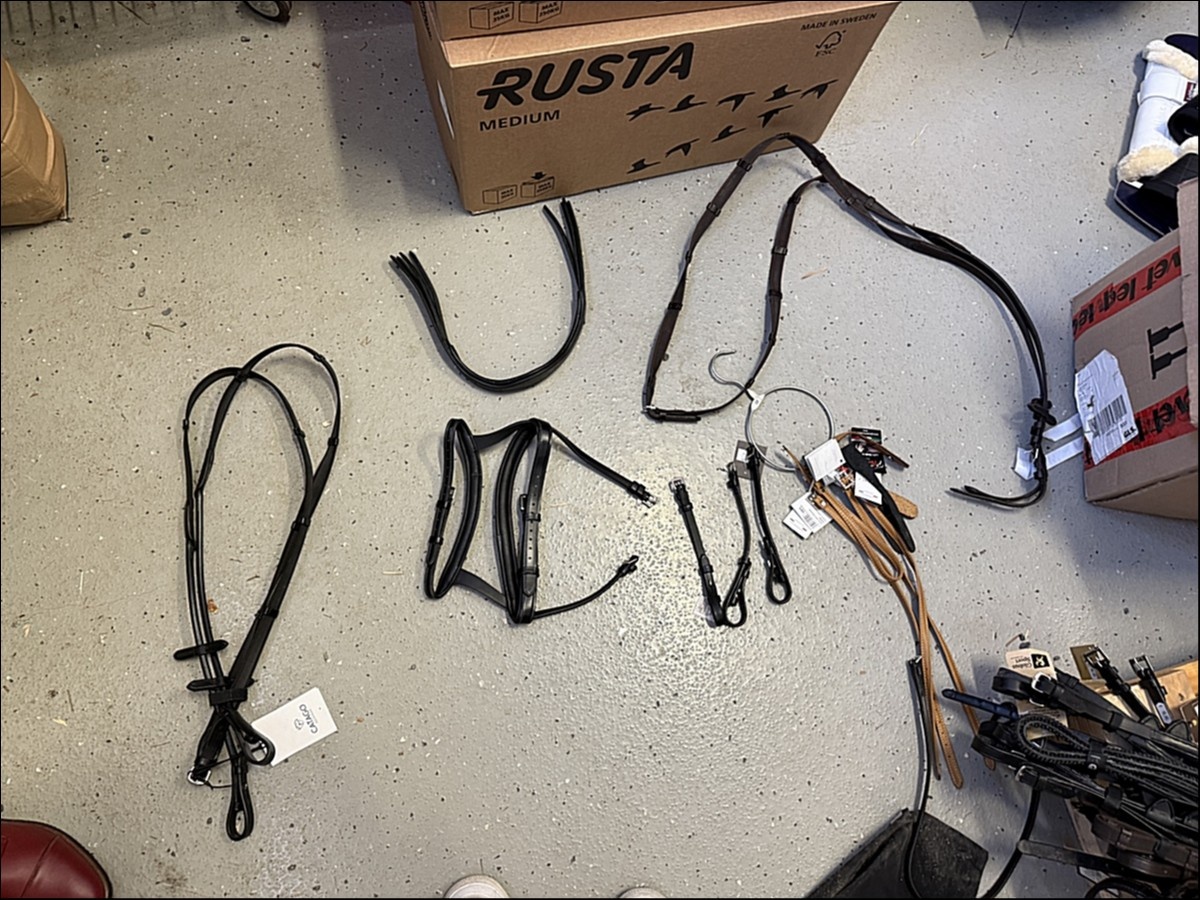 Myyntikohteet » 2. Menivek Oy:n konkurssipesä (3277335-8), KANGASALA, 09.02.2026 » 37. Hevostarvikkeet mm. Otsapannat, ohjaimet, turpahihnat yms. noin (20 kappaletta)