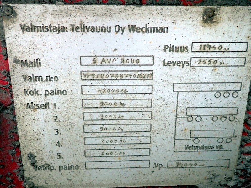 Myyntikohteet » M&A Metsäkuljetus Oy:n konkurssipesä (2658712-9), KOUVOLA, 11.02.2026 » 01. Weckman 5 AVP 8080, vm. 2007 puuperävaunu (WOJ-276)
