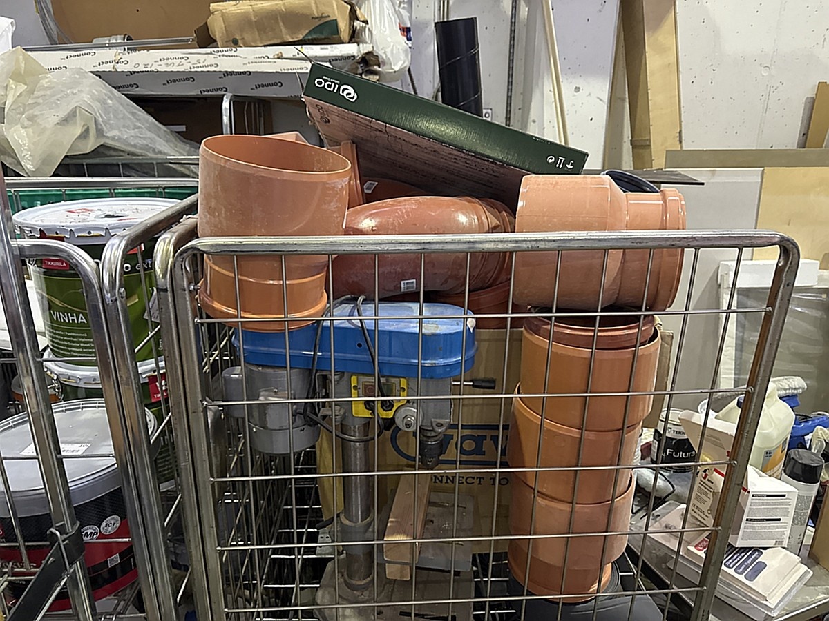 Rullakoiden tavarat sisältää mm. pylväsporakoneen.