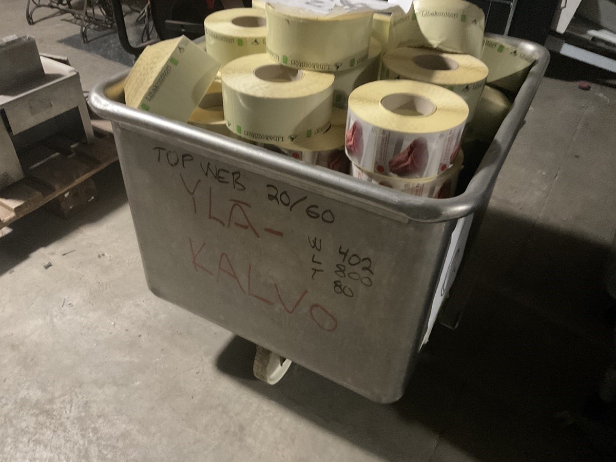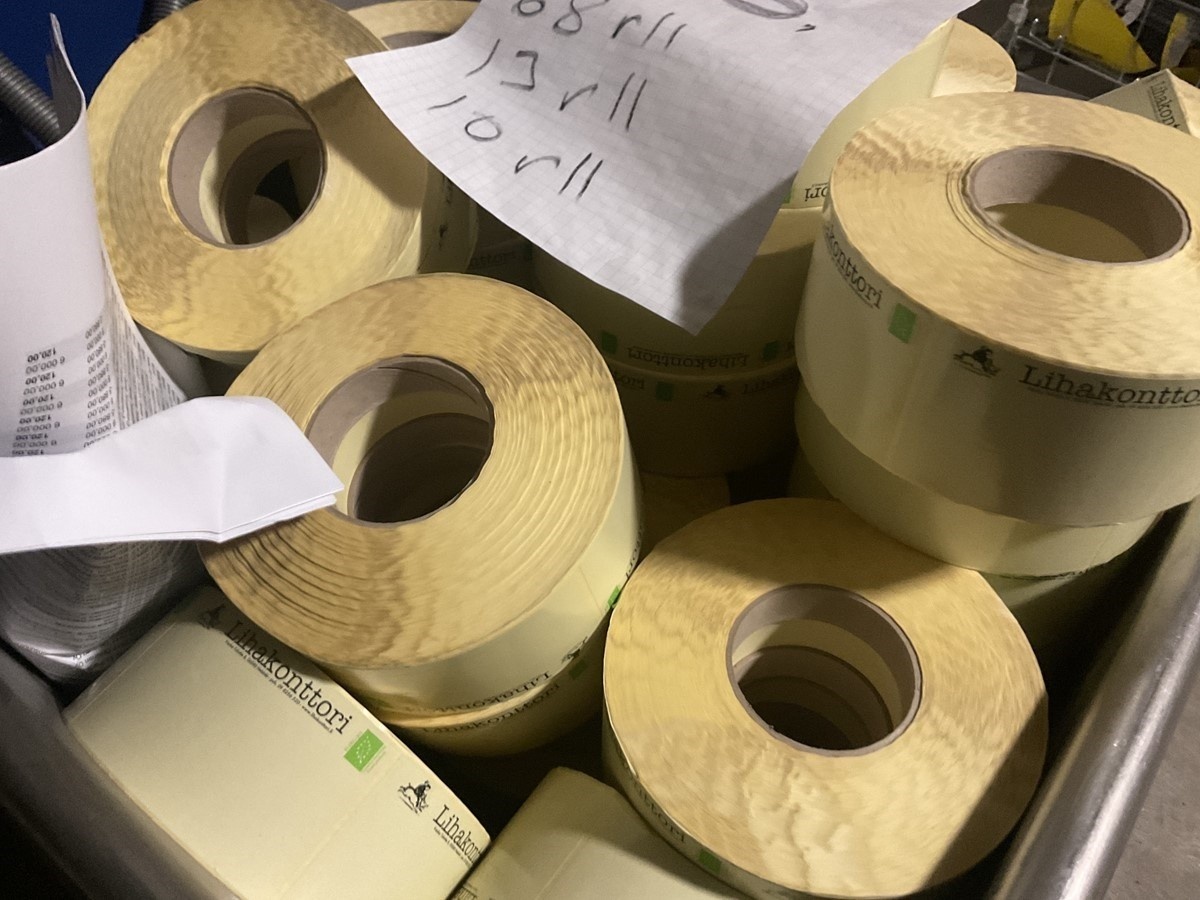 Sis. 91 rullaa elintarvike-etikettirullat / tarrat