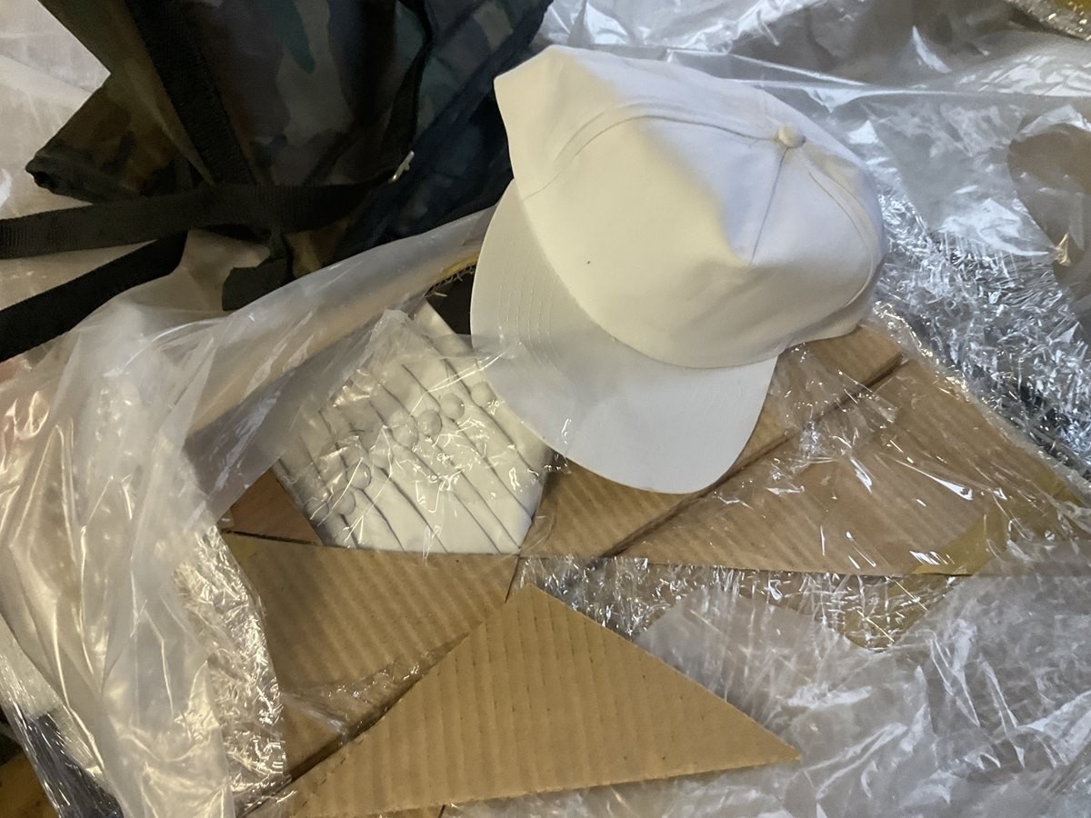 Myyntikohteet » Kiinteistö ja Sijoitus Laakso Oy:n konkurssipesä, KARKKILA, 12.02.2026 » 76-77. Kuormalavoilla lippalakkeja, työasuja 12 ltk ja toimistotuoli ja toimistotarvikkeita