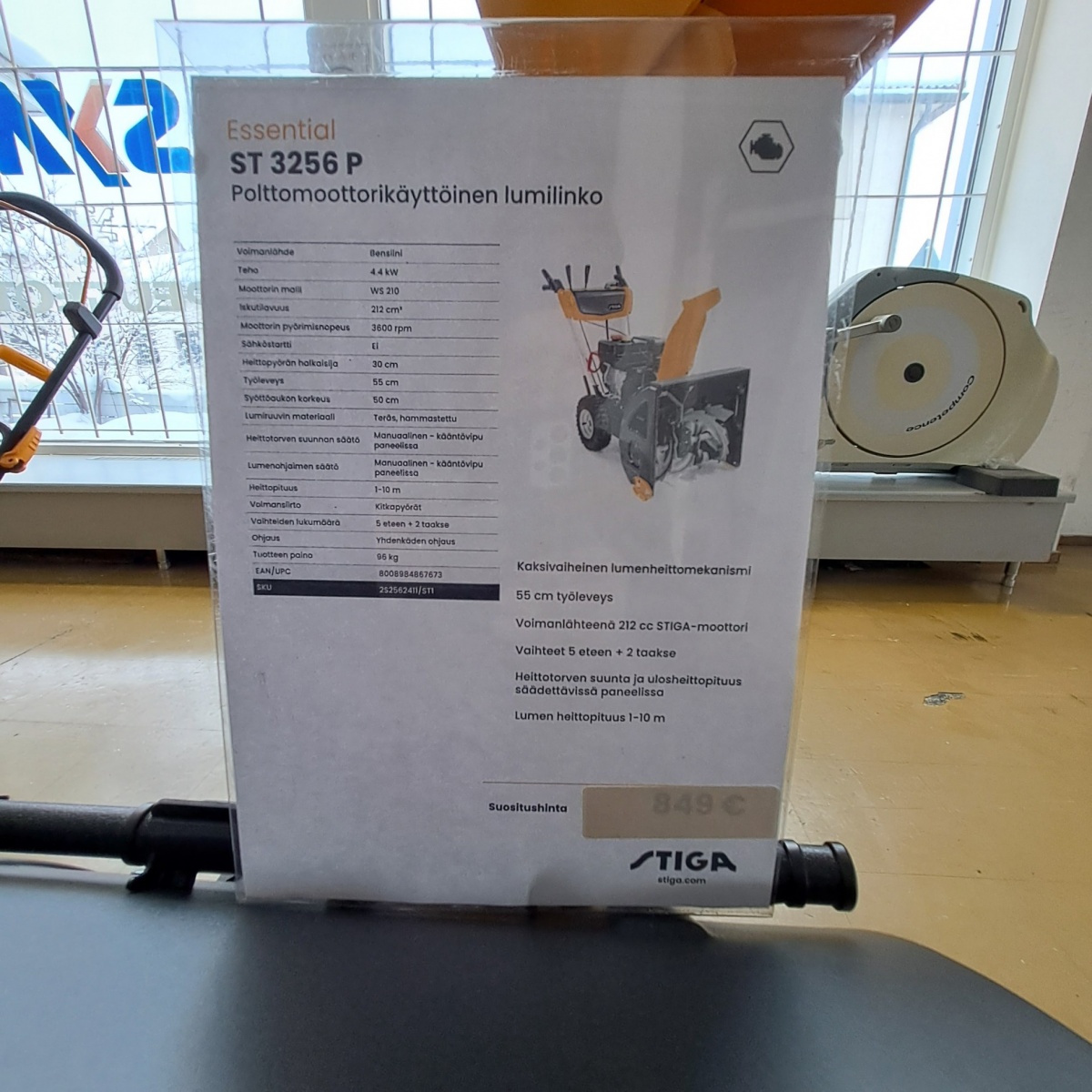 Myyntikohteet » 1. Outokummun Pienkone Oy:n konkurssipesä, OUTUKUMPU (3333390-1), 14.02.2026 » 02. Lumilinko Stiga ST 3256 P - 4,4 kW, työleveys 55 cm (UUSI)