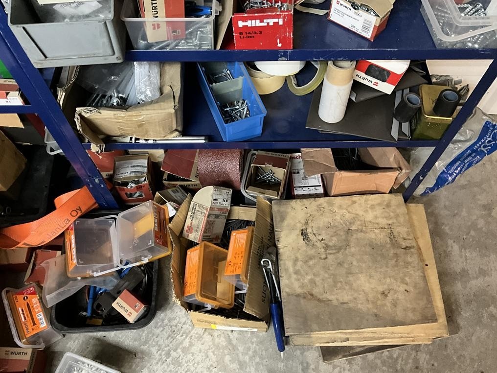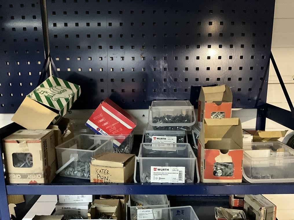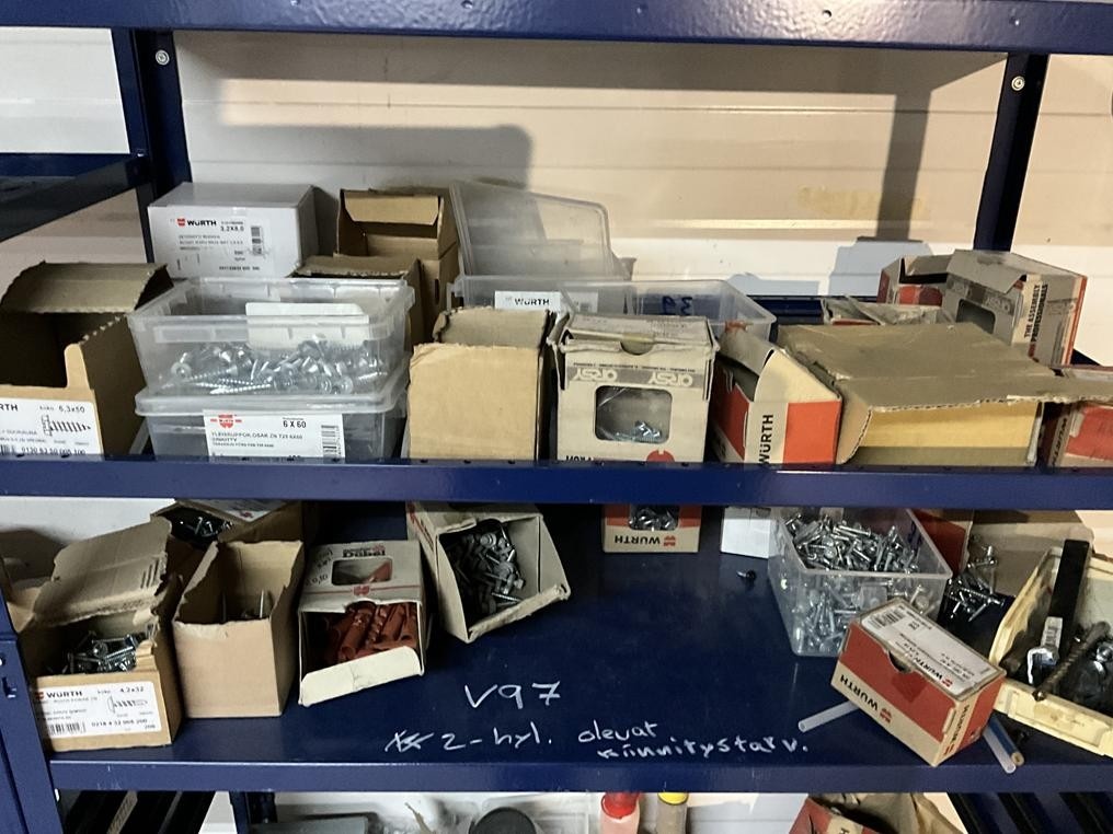 Myyntikohteet » 7. IV-Pelti Luuri Oy:n konkurssipesä, LOIMAA (1637489-1), 16.02.2026 » V097. Kahdessa hyllyvälissä olevat kiinnitystarvikkeet ym.