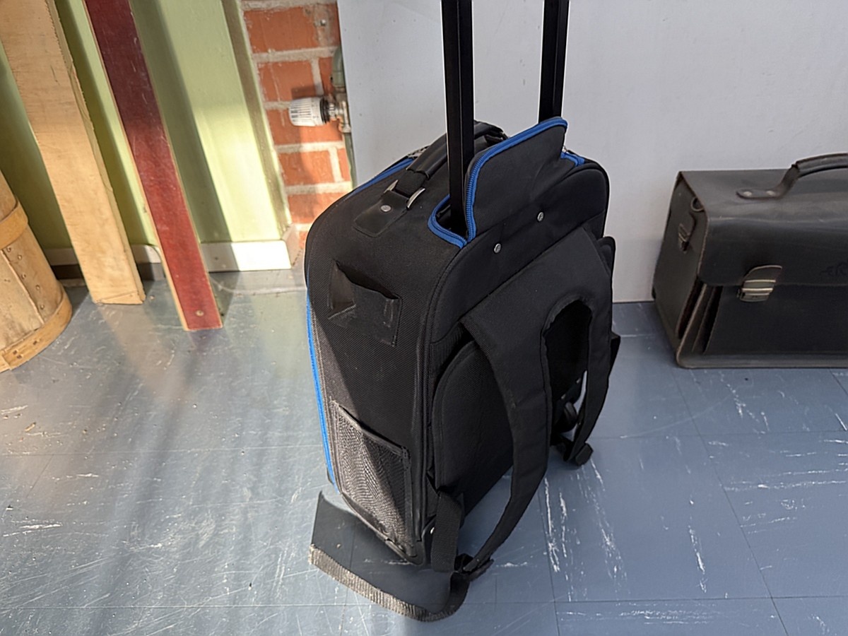Yksi vedettävä kangas reppu eli yhteensä laukkuja 13 kappaletta.